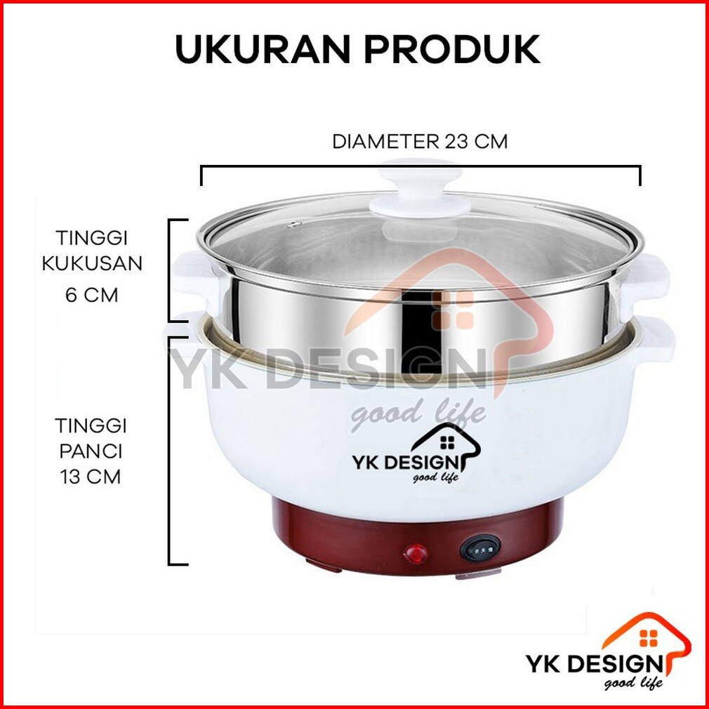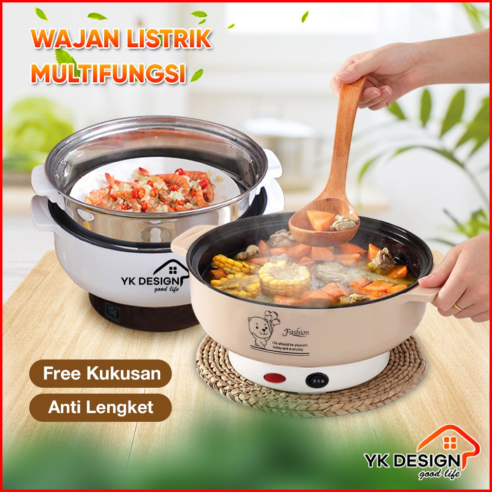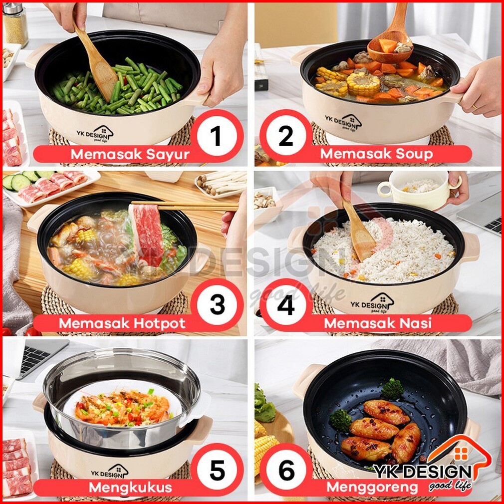 Yk Design Panci Elektrik Teflon Serbaguna 2 4l Multifungsi Free Kukusan Stainless Yk-803 801 802
