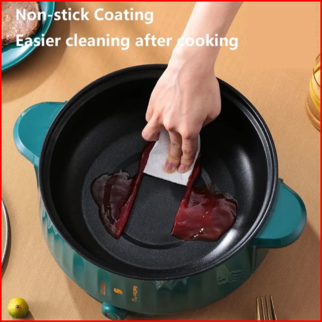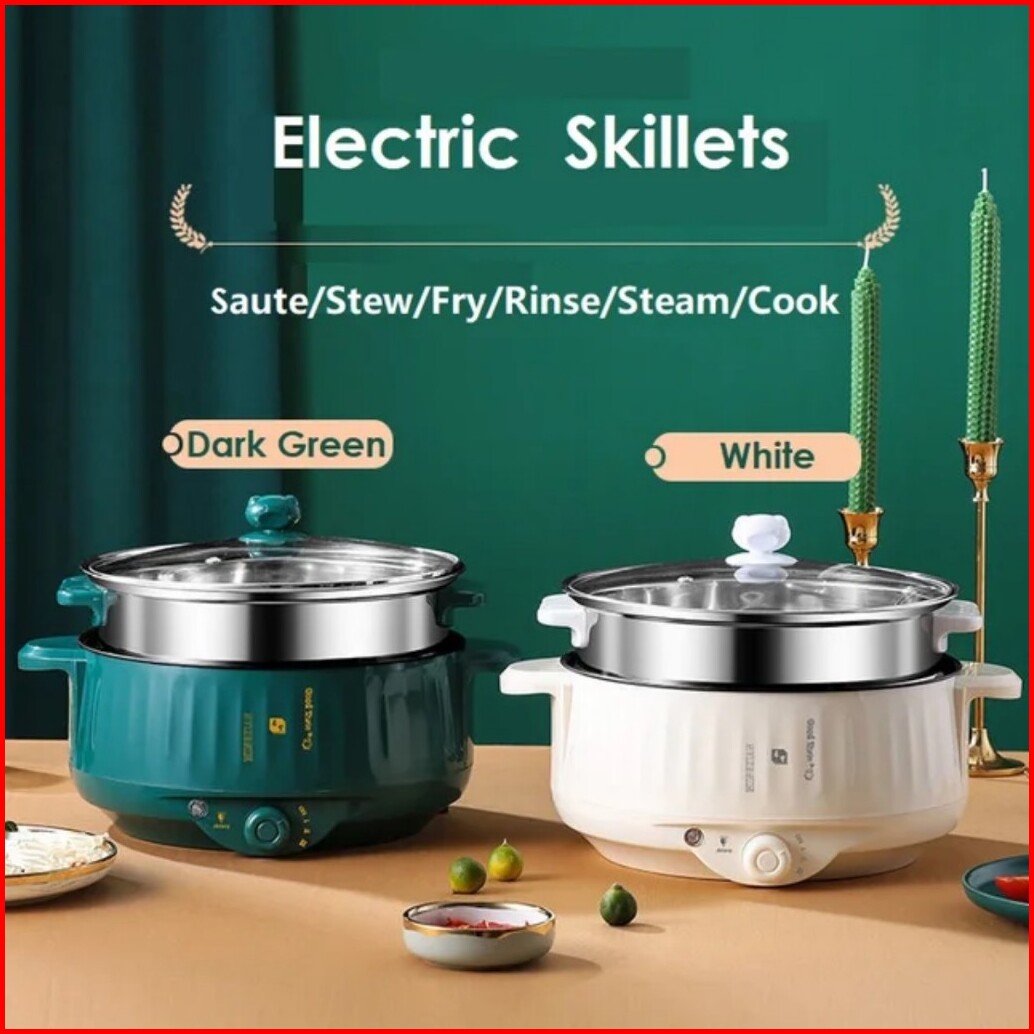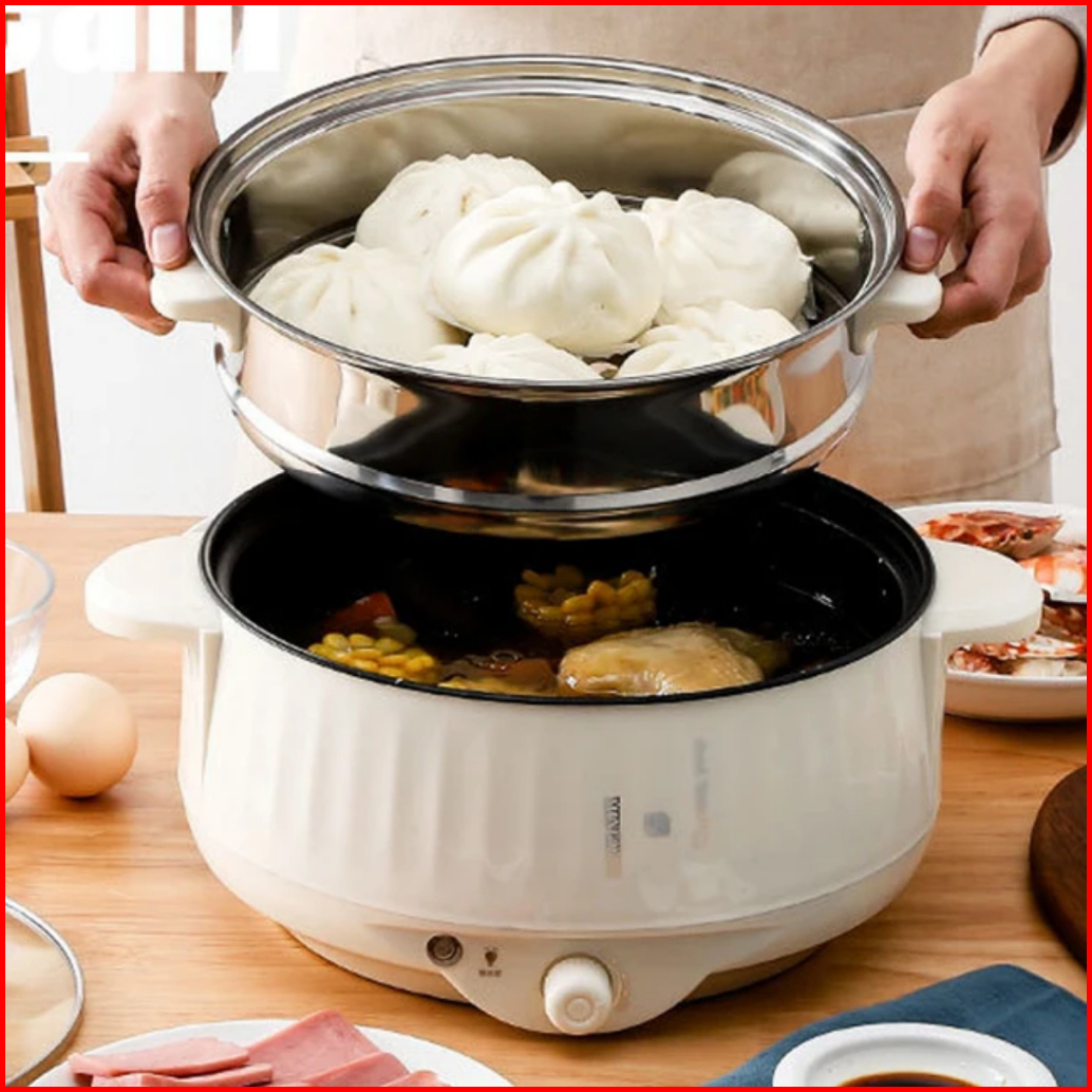 Panci Elektrik Serbaguna Anti Lengket Plus Steamer 22cm New Model Panci Listrik Campuran Keramik