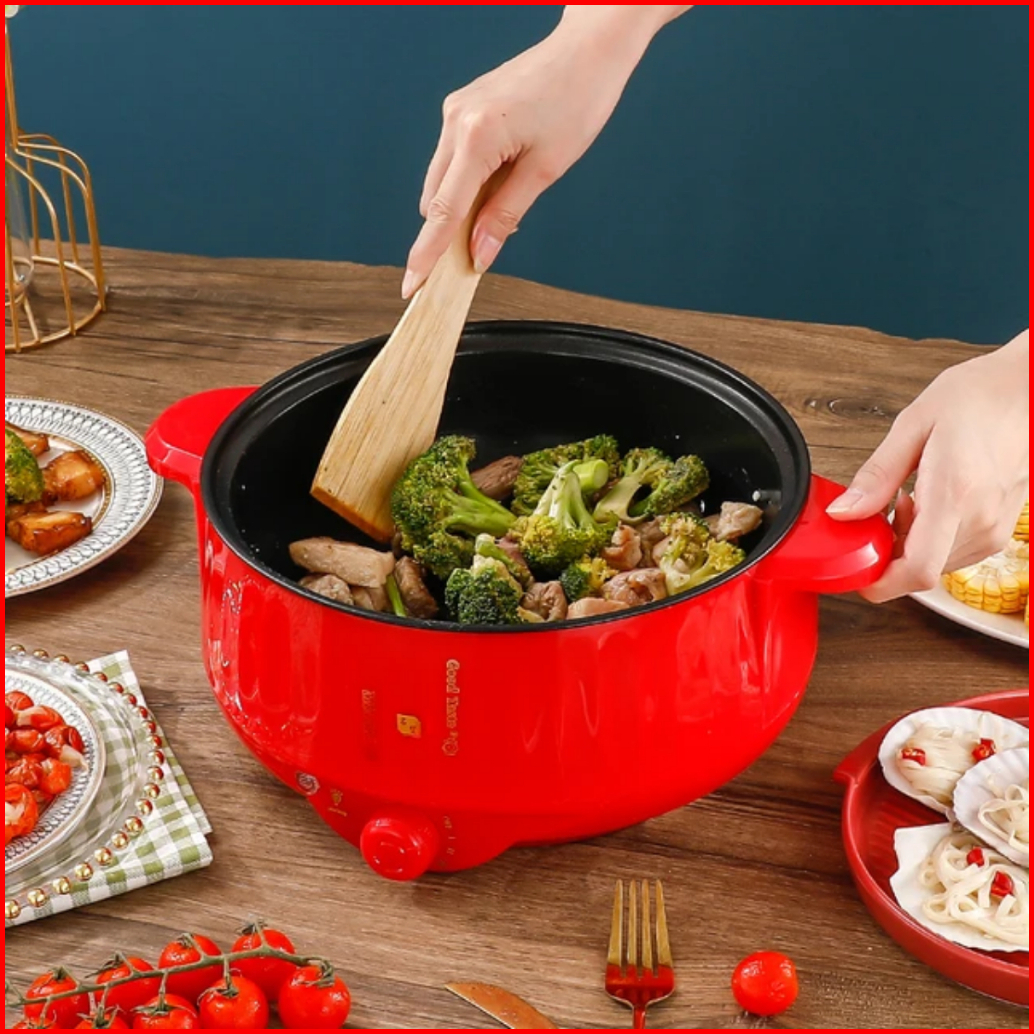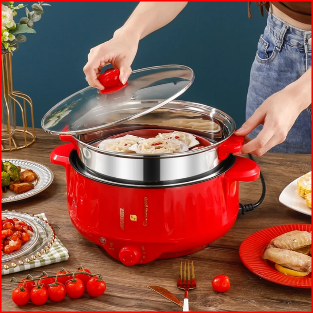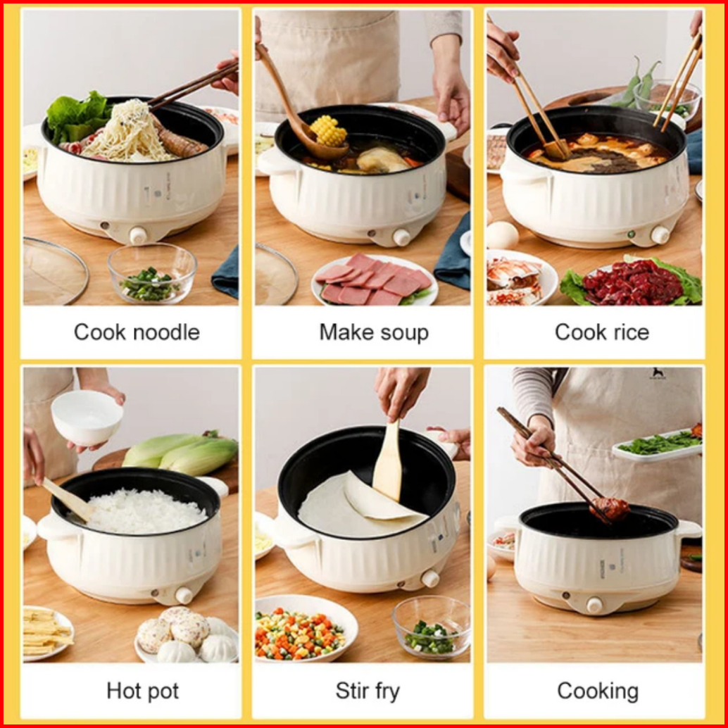 Panci Elektrik Serbaguna Anti Lengket Plus Steamer 22cm New Model Panci Listrik Campuran Keramik