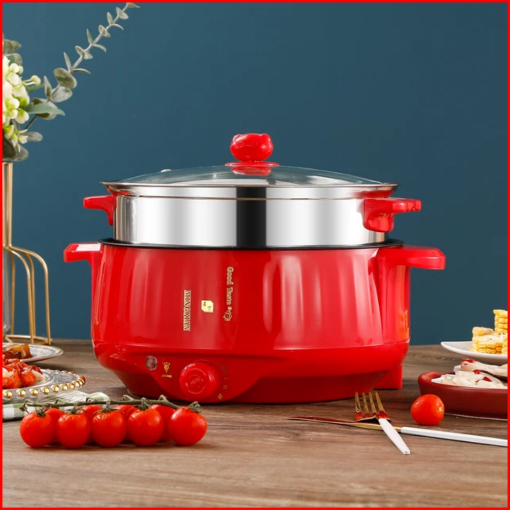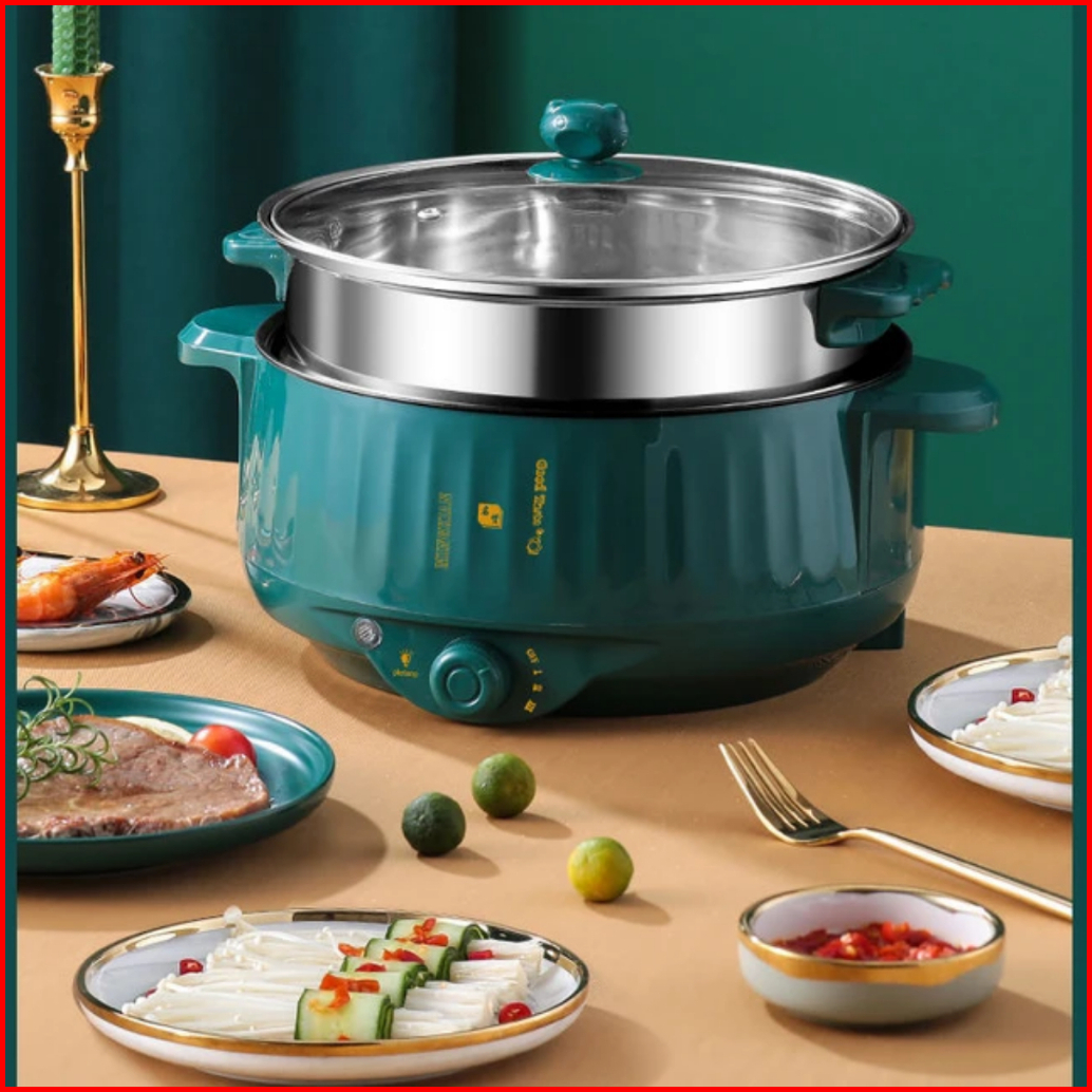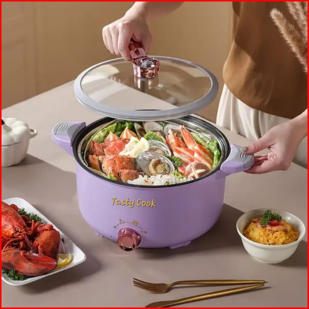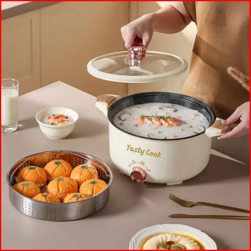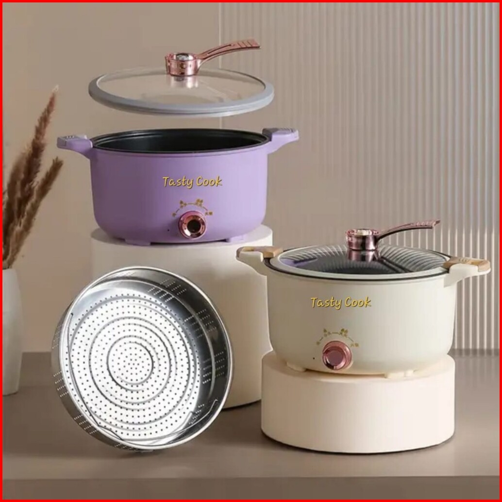 Panci Listrik Serbaguna Plus Steamer Panci Elektrik Multifungsi Anti Lengket Panci Masak Serbaguna