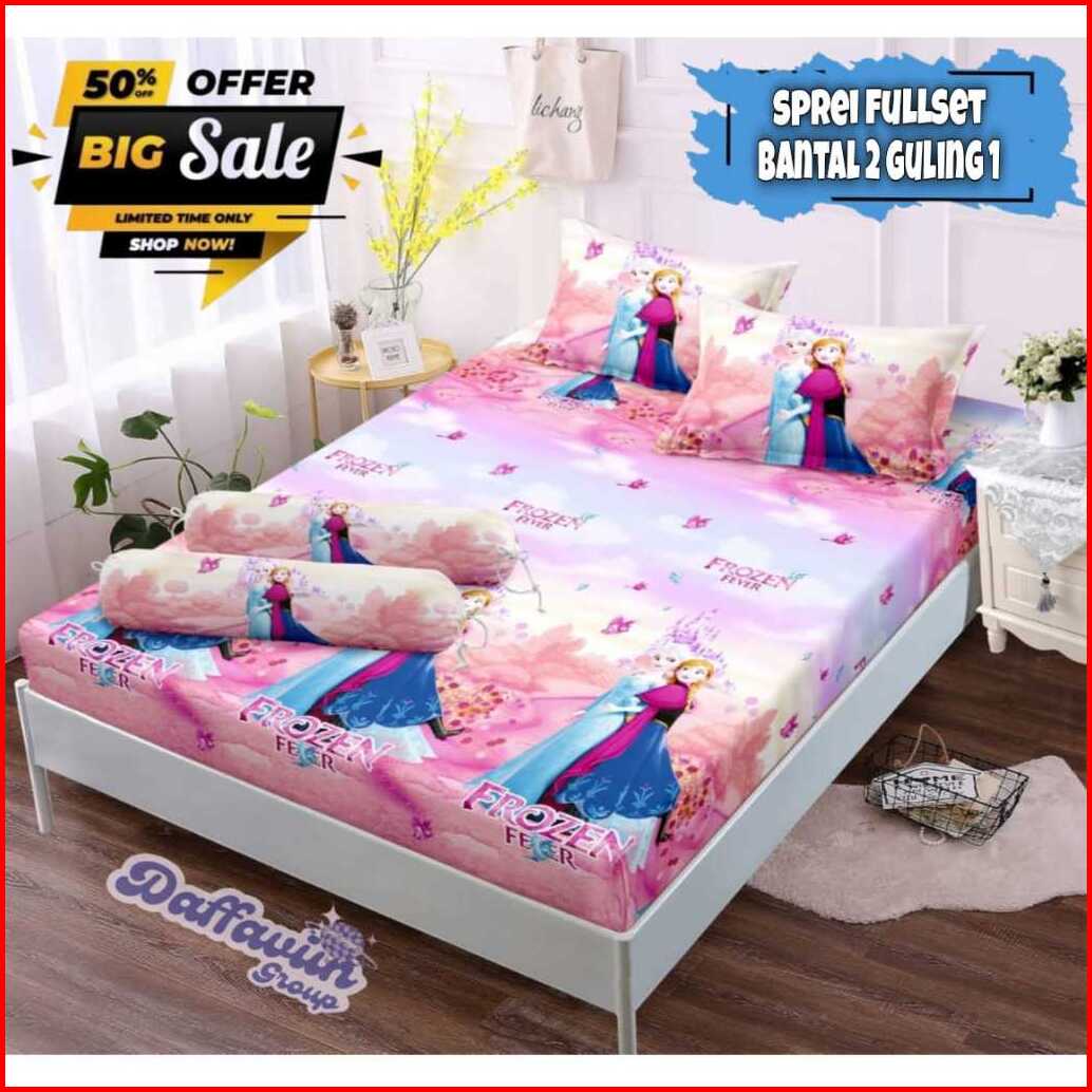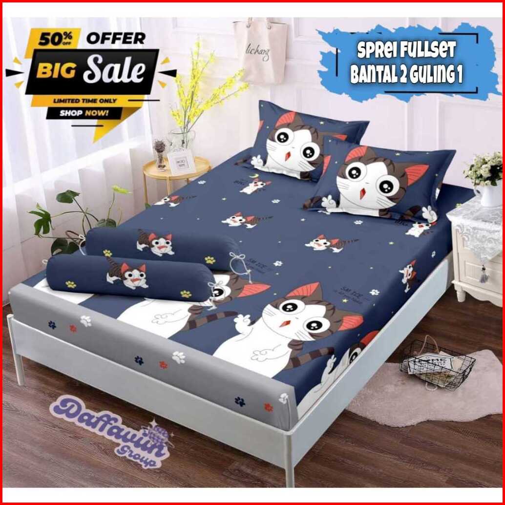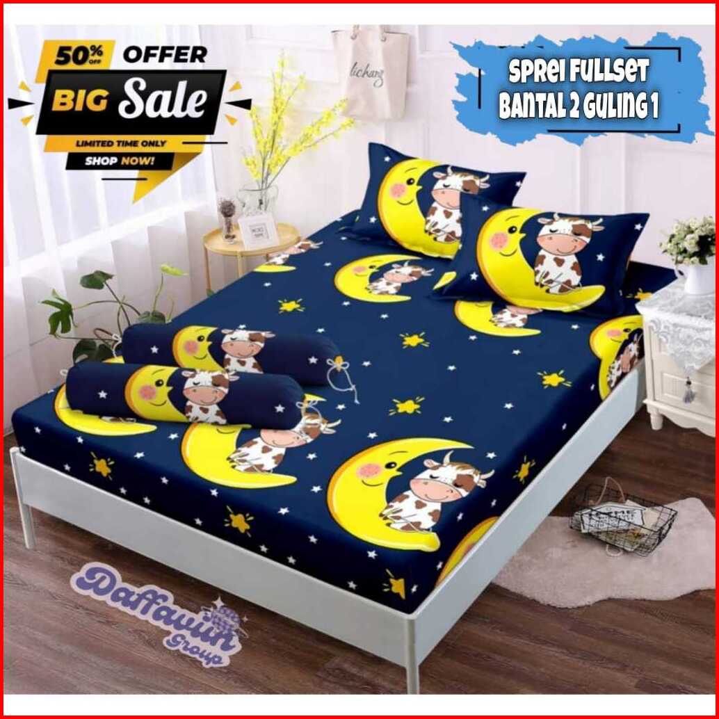 Seprei Motif Kartun Karakter Anak Laki-laki Perempuan Terbaru 2023 Set Sarung Bantal 2 Guling 1 Bahan Katun Jepang Lembu