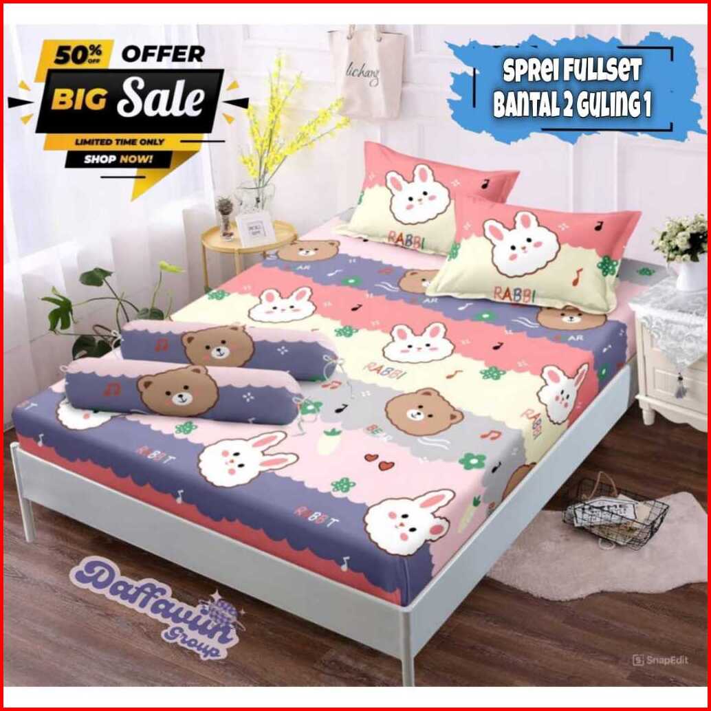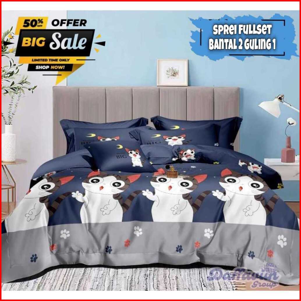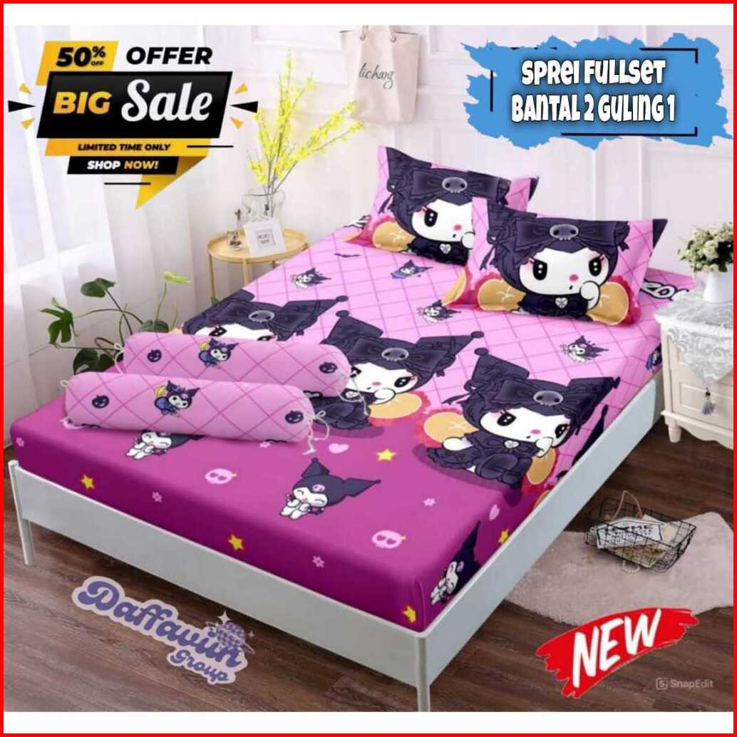Seprei Motif Kartun Karakter Anak Laki-laki Perempuan Terbaru 2023 Set Sarung Bantal 2 Guling 1 Bahan Katun Jepang Lembu