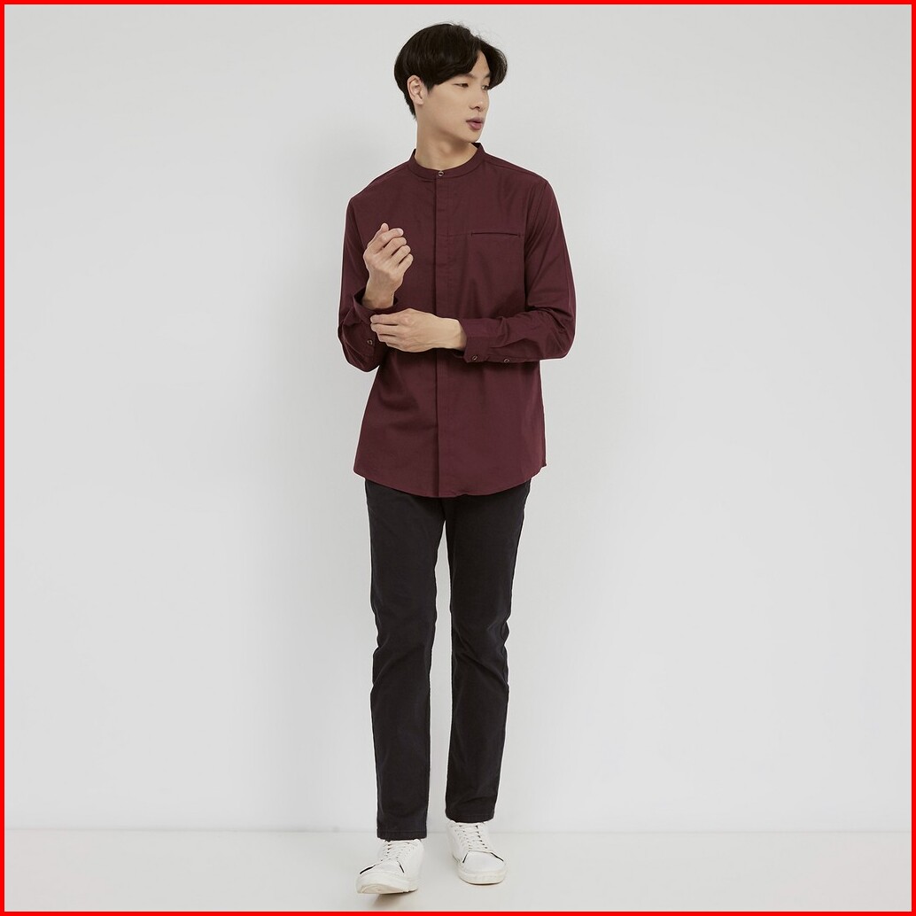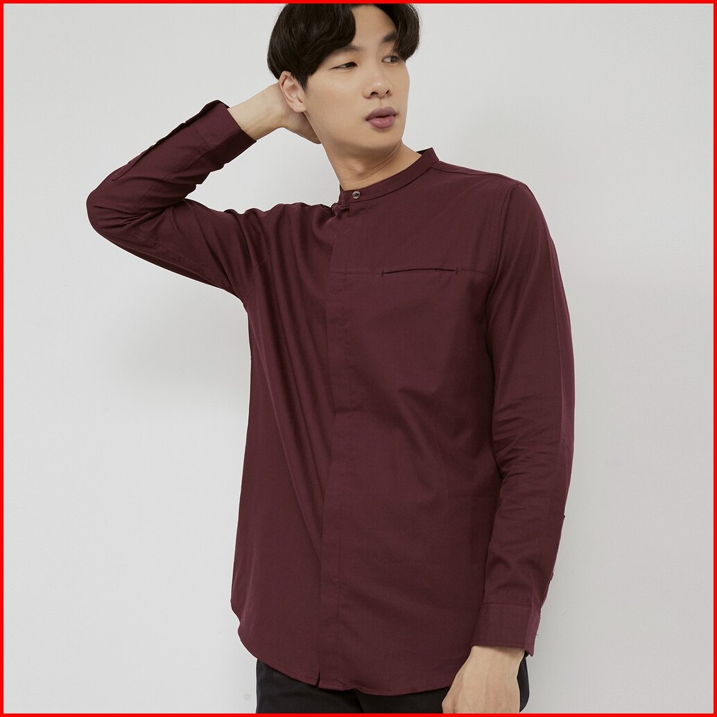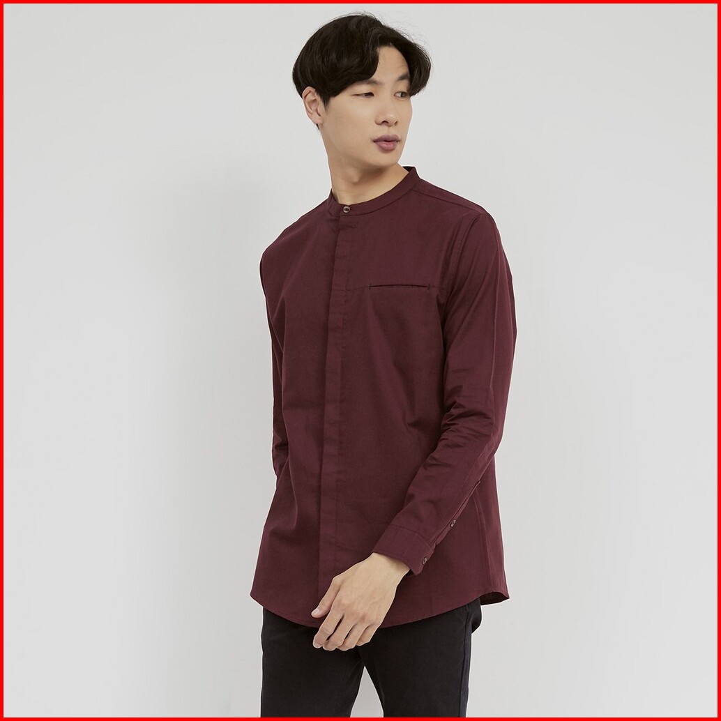 M231 Kemeja Pria Koko Shanghai Polos Soft Twill Panjang Maroon 1971c