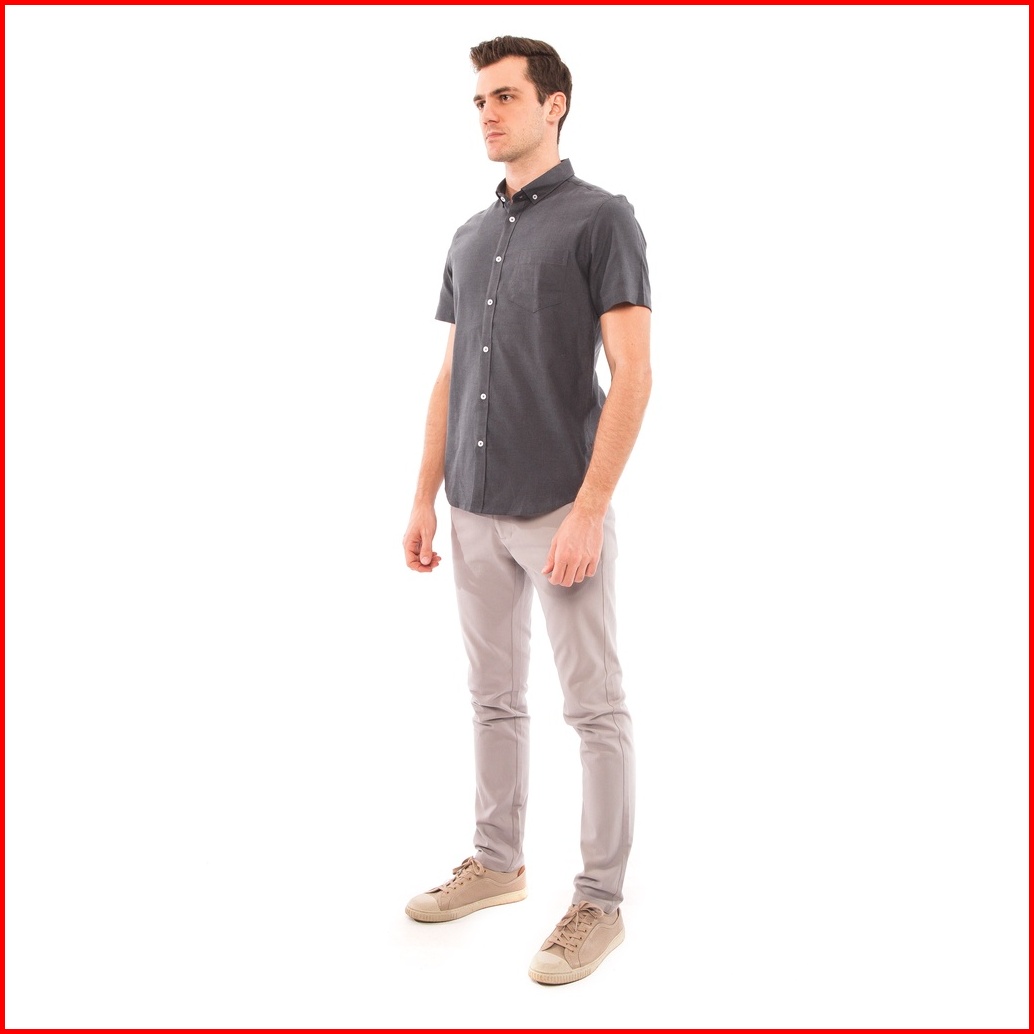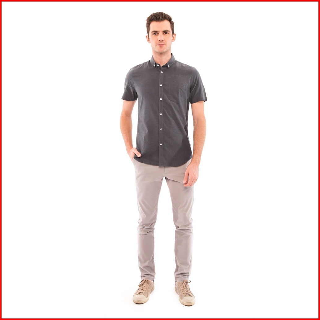Moc Kemeja Lengan Pendek Pria Slim Fit Trone Bestbuy-dark Grey