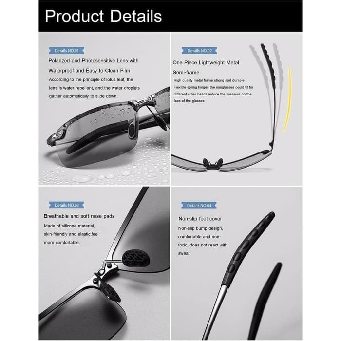 HBS KACAMATA HITAM ANTI SILAU SIANG DAN MALAM POLARIZED PHOTOCHROMIC UV400 SPORTS SUNGLASSES
