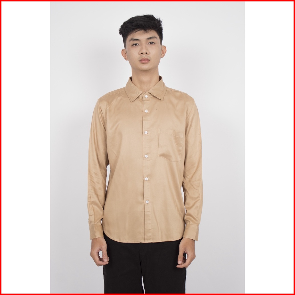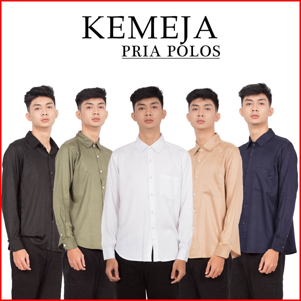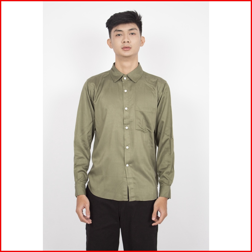 Fortglass Long Shirt Mosco Kemeja Rayon Twill Polos Pria Lengan Panjang Formal Hitam Putih Navy Maroon Khaki Olive