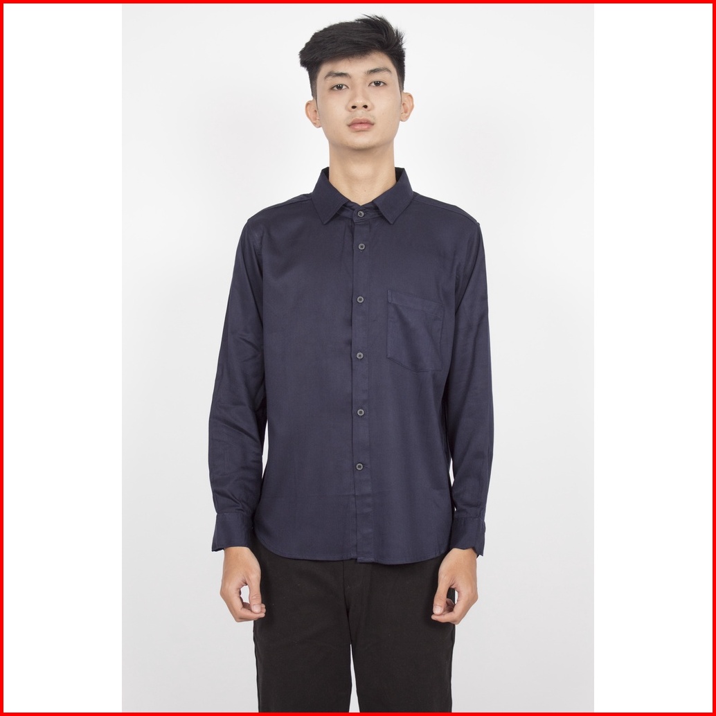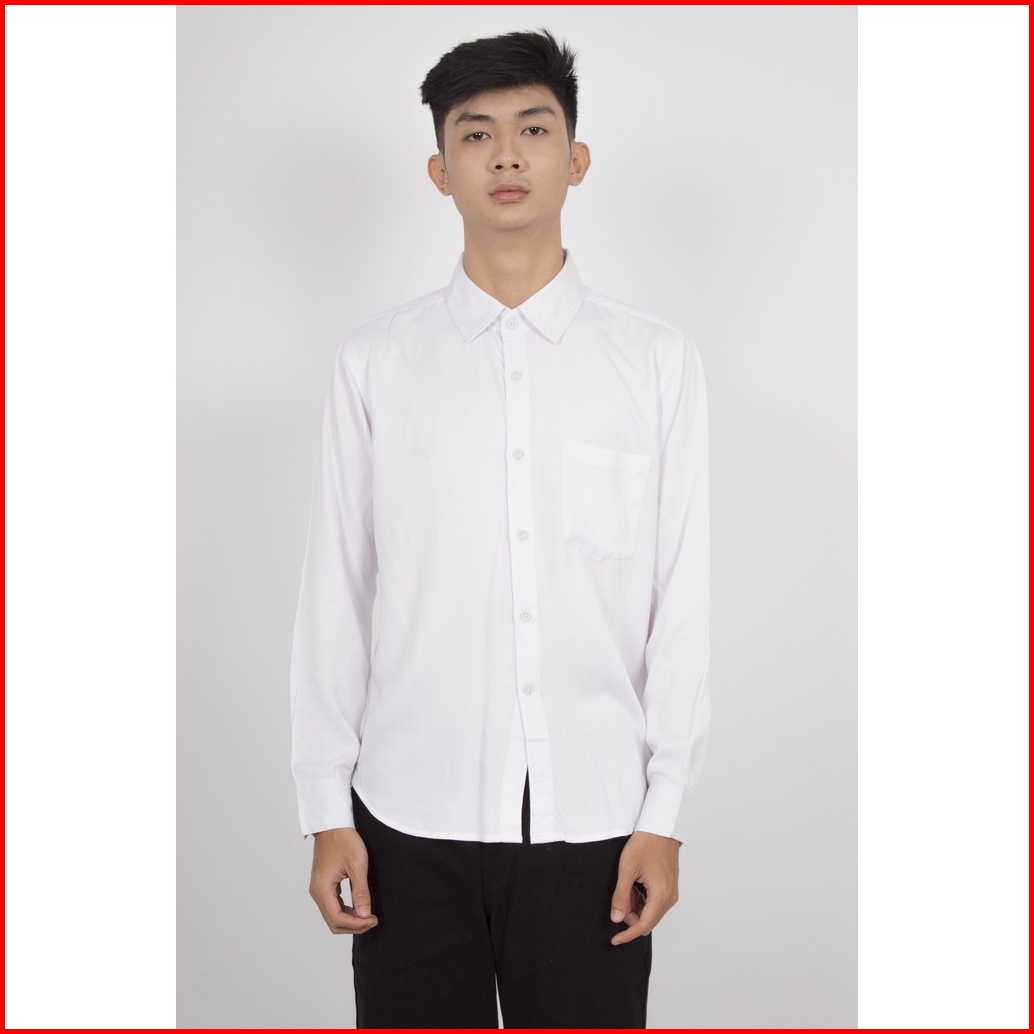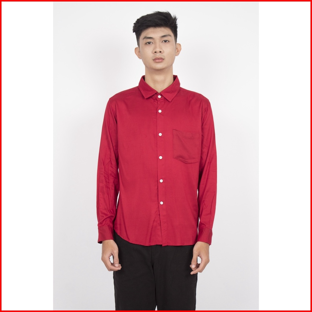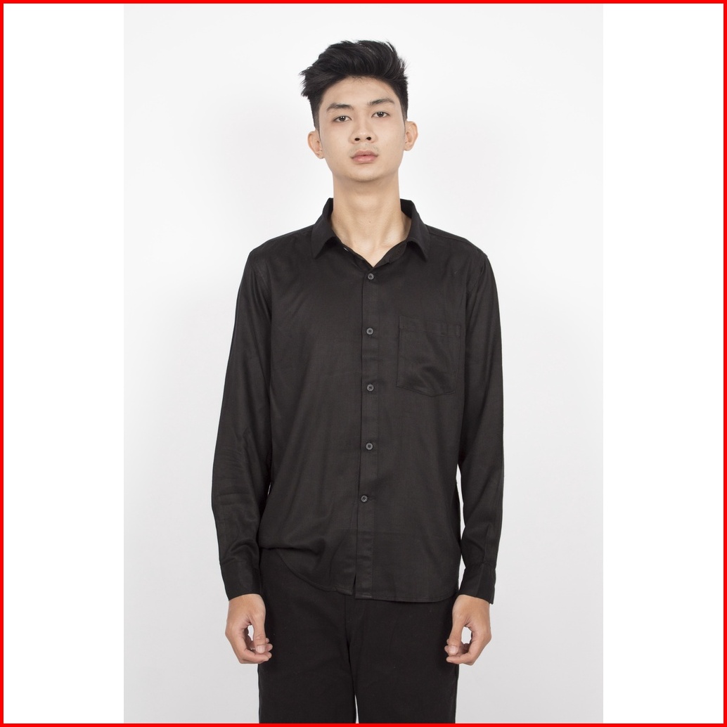 Fortglass Long Shirt Mosco Kemeja Rayon Twill Polos Pria Lengan Panjang Formal Hitam Putih Navy Maroon Khaki Olive