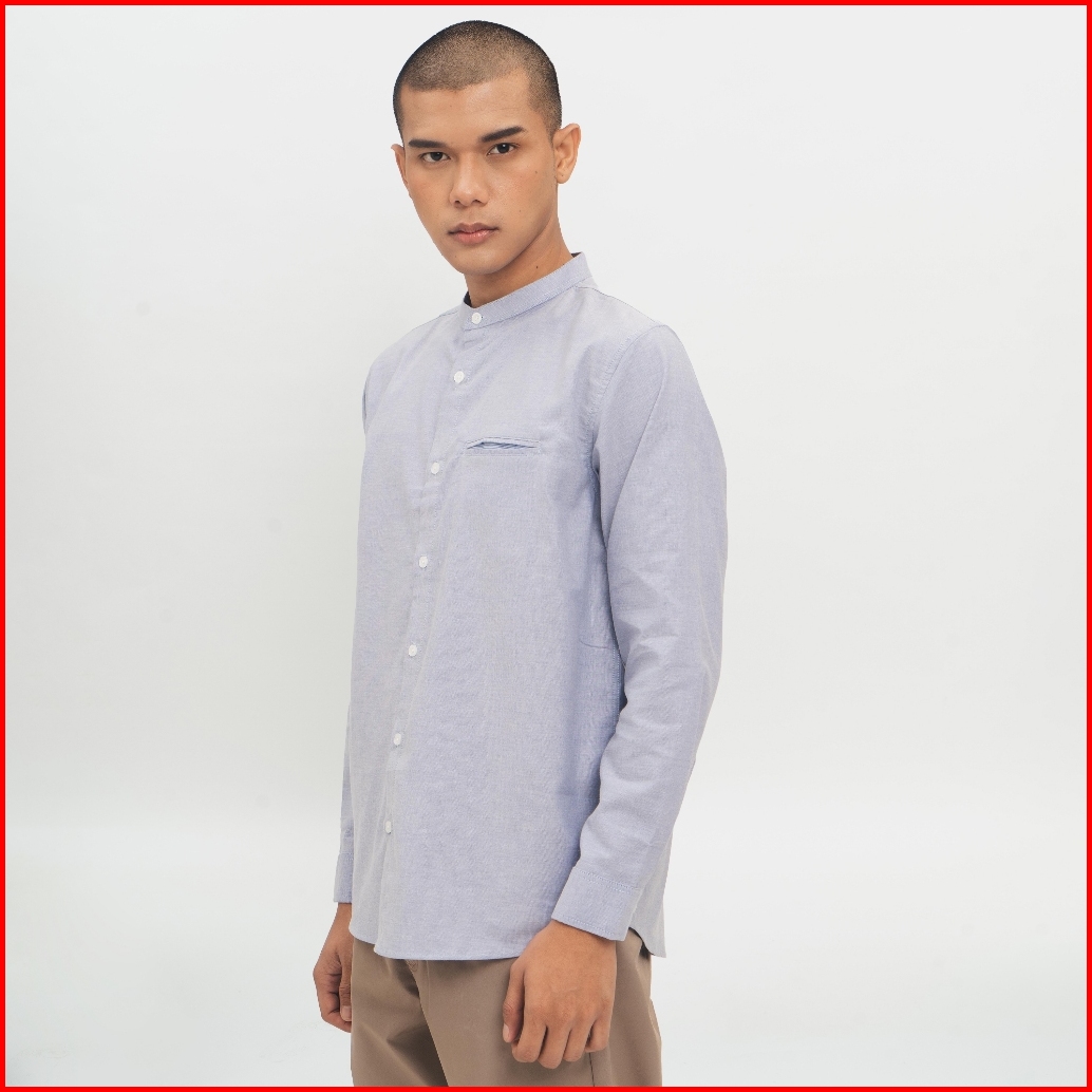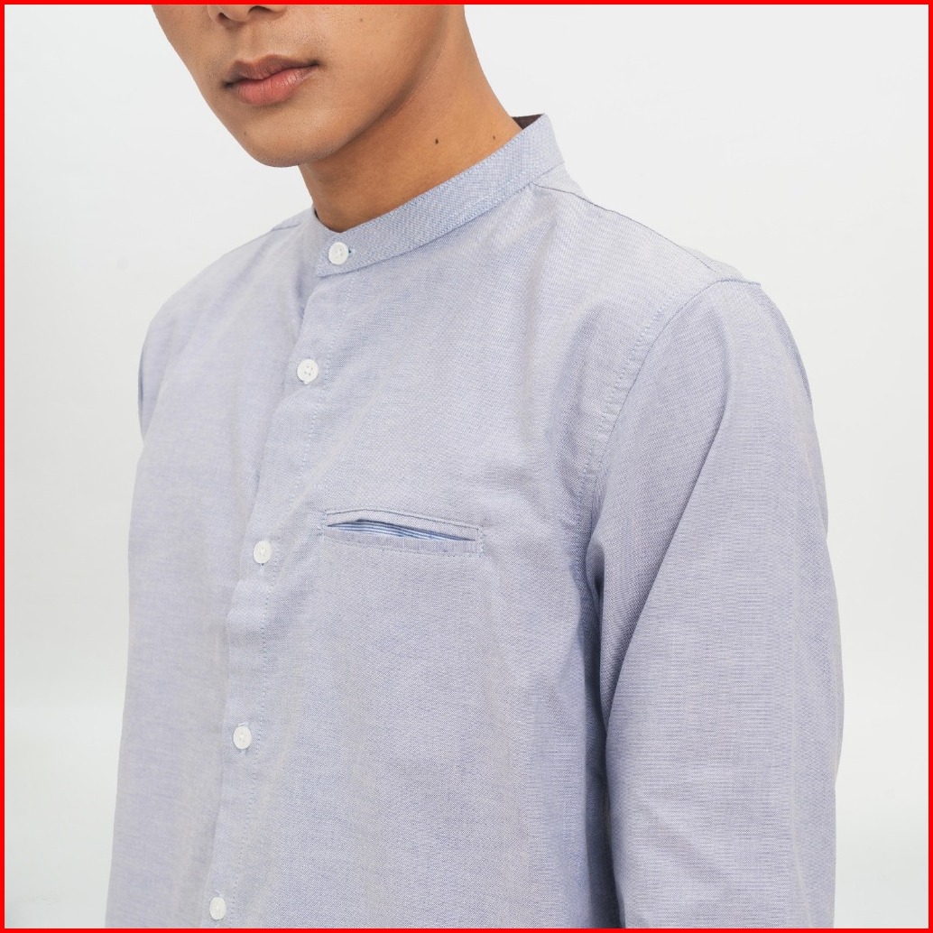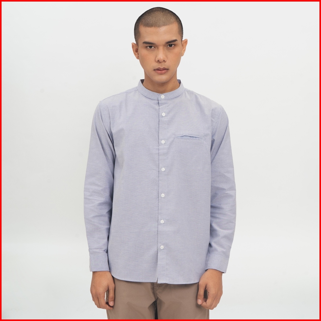 M231 Kemeja Pria Koko Shanghai Polos Oxford Panjang Biru 1552f