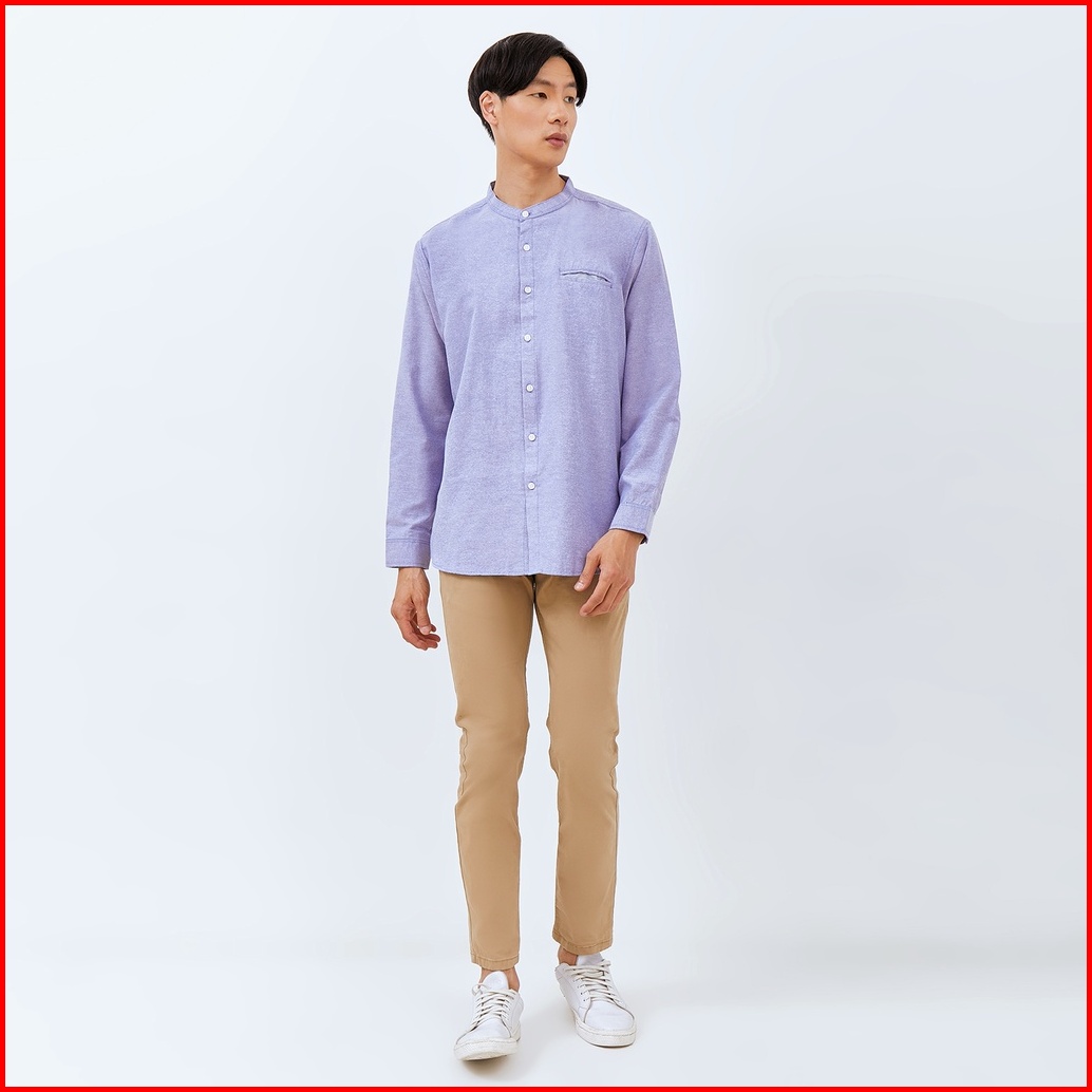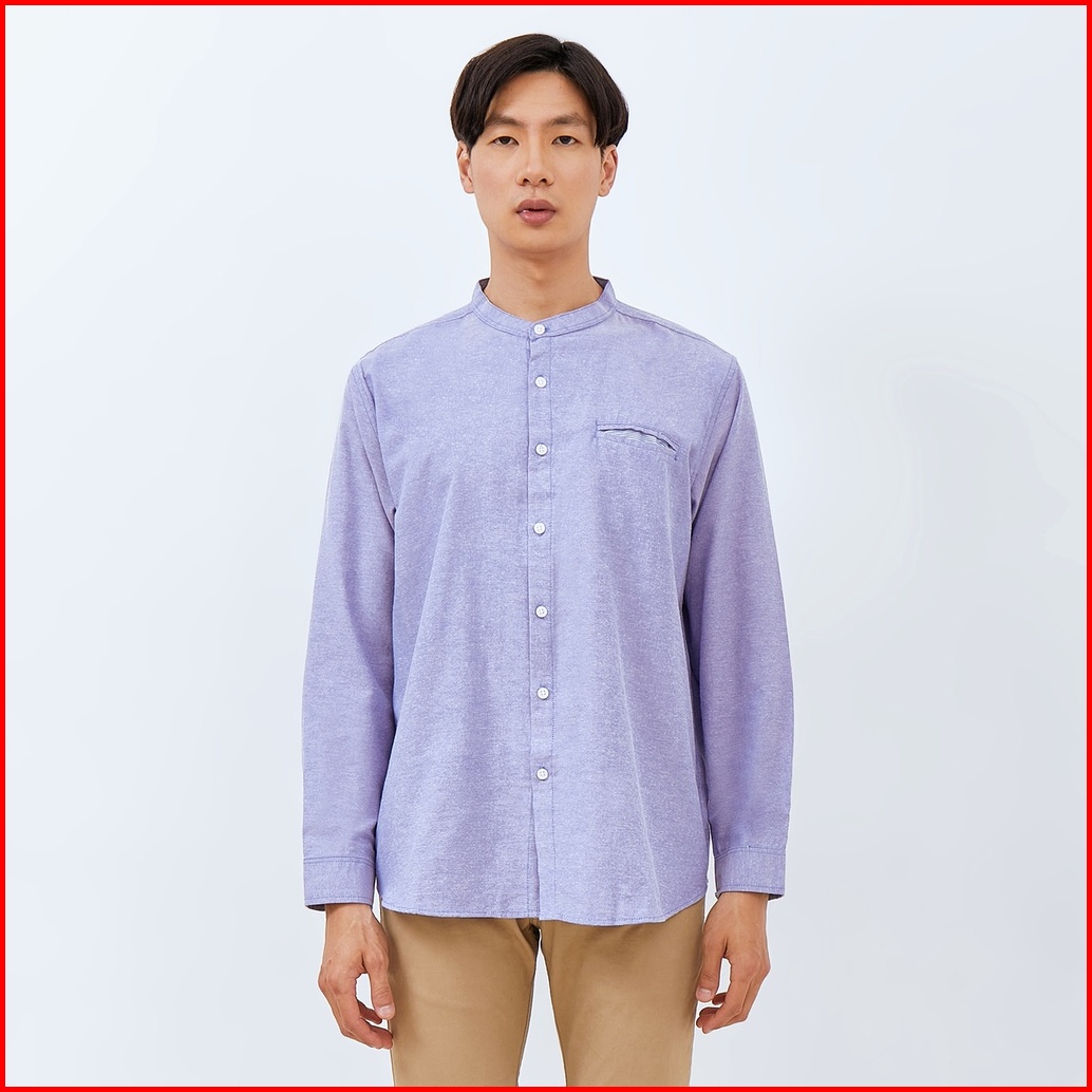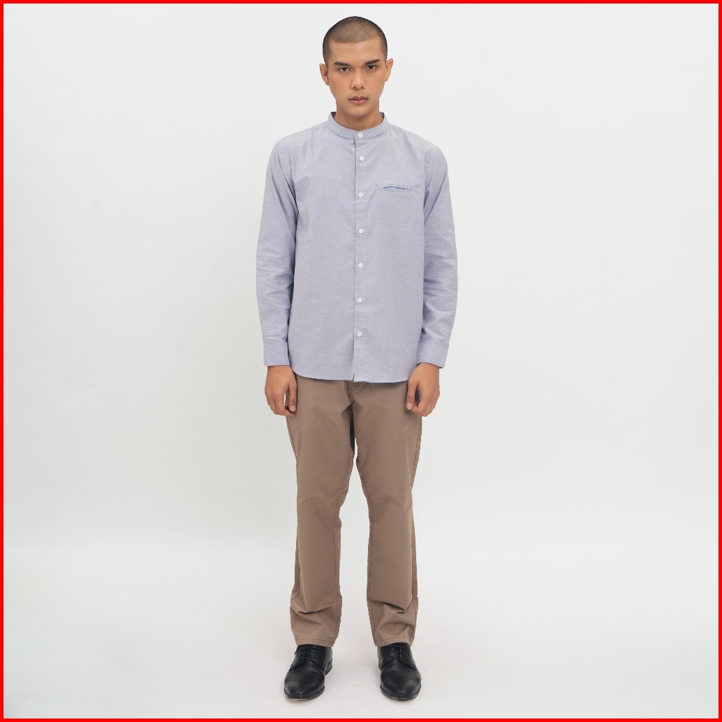 M231 Kemeja Pria Koko Shanghai Polos Oxford Panjang Biru 1552f