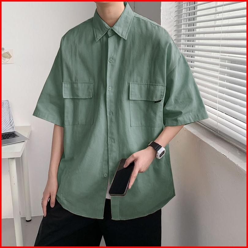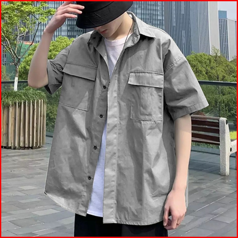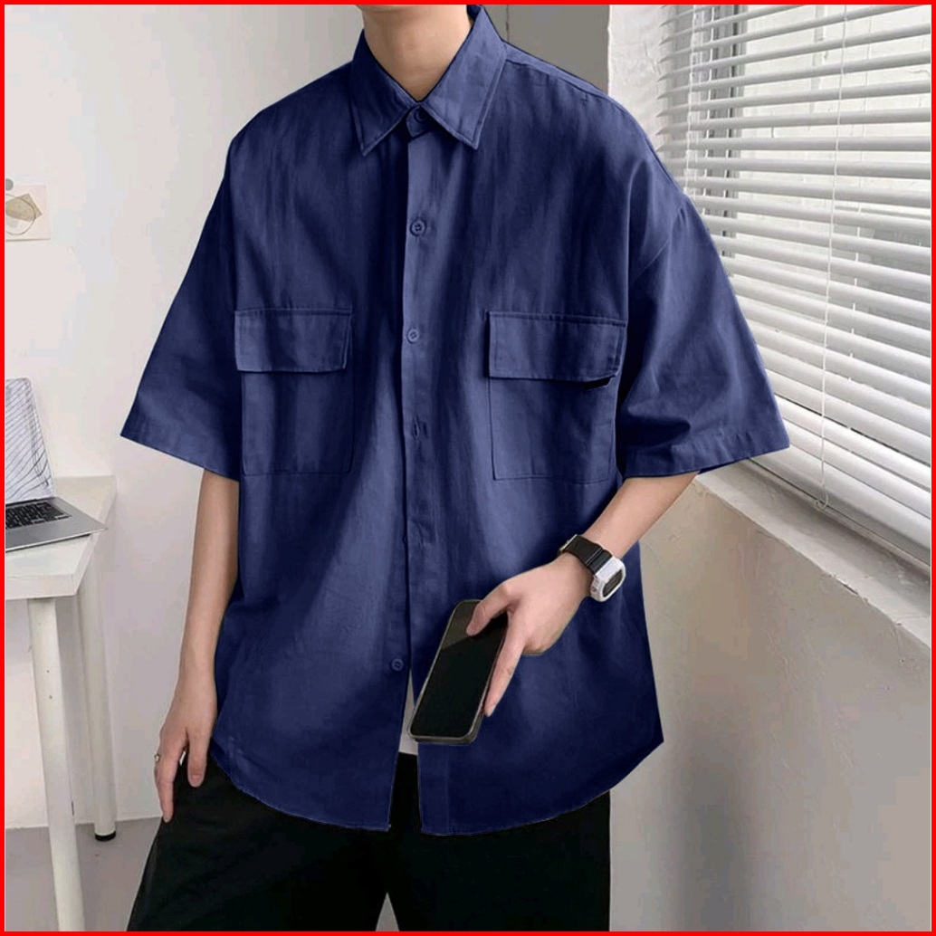 Amspro - Kemeja Pria Oversize Kemeja Polos Jumbo Atasan Pria Pd-08 Kasual Trendi Unisex