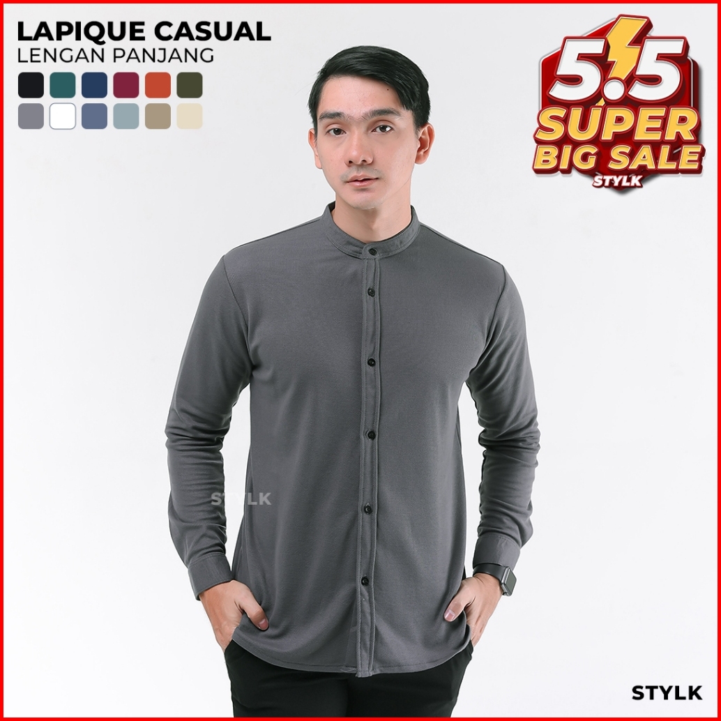 Stylelaki Lapique - Kemeja Abu-abu Pria Casual Lengan Panjang Slim Fit Anti Kusut Nyaman Dan Lembut