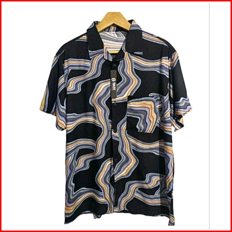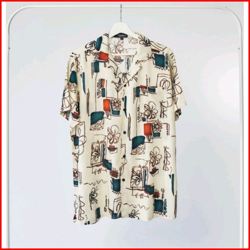 Kemeja Pria Hawai Kemeja Pantai Abstrak Vintage Casual Lengan Pendek Retro Bahan Rayon Viscose Import Adem