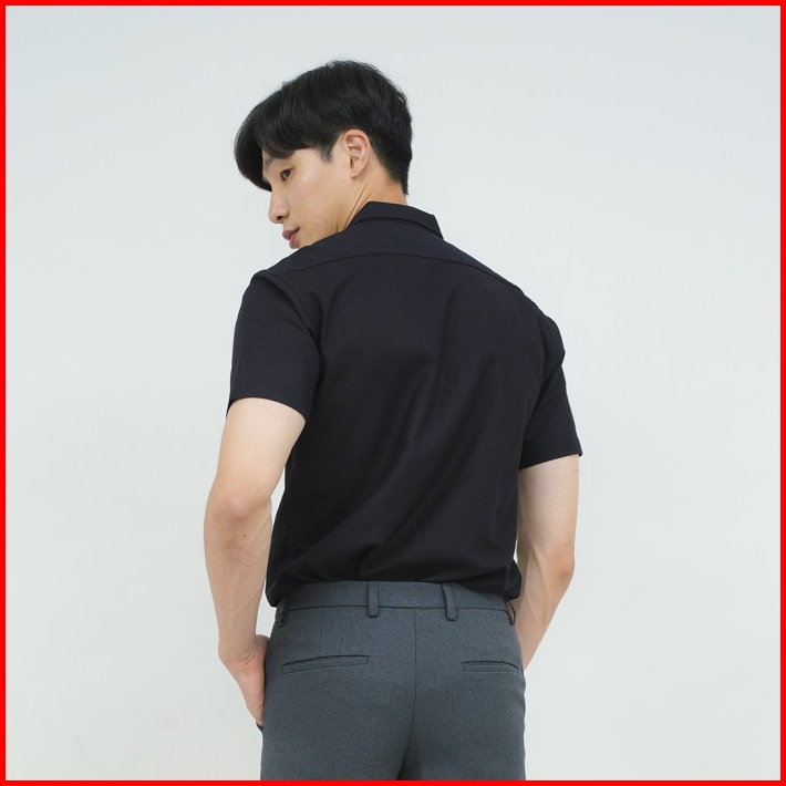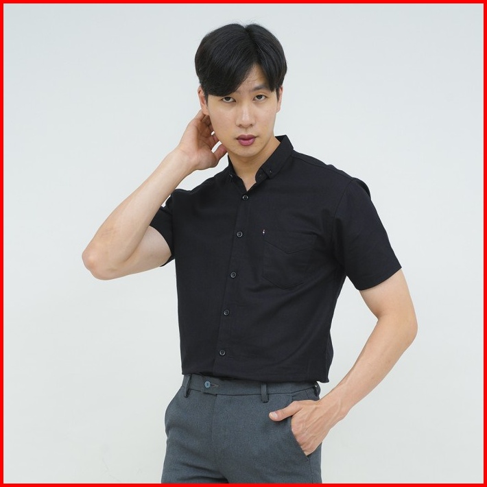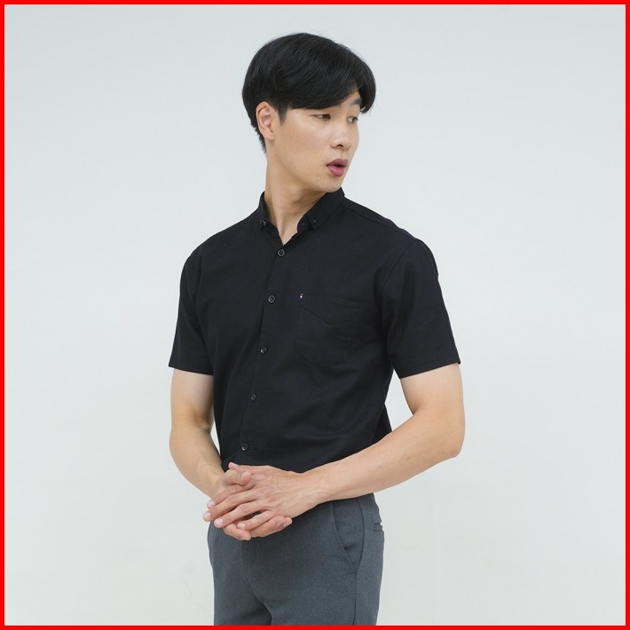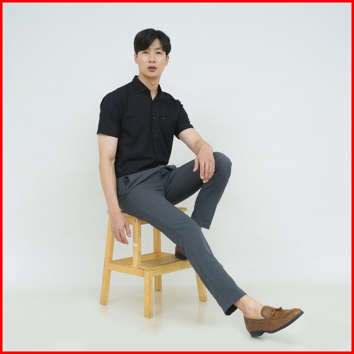 Kemeja Lengan Pendek Pria Formal Slim Fit Hitam Houseofcuff