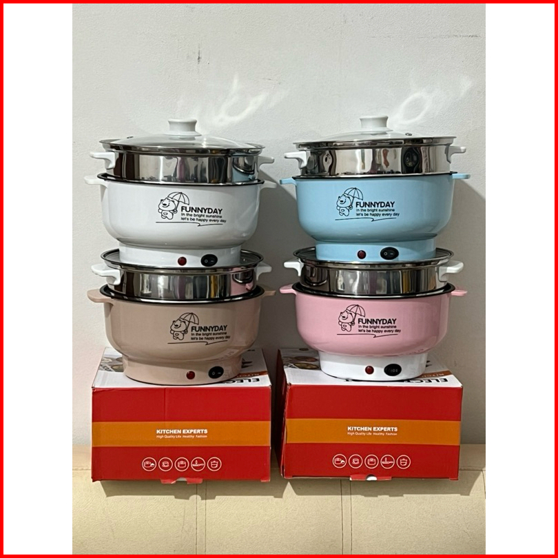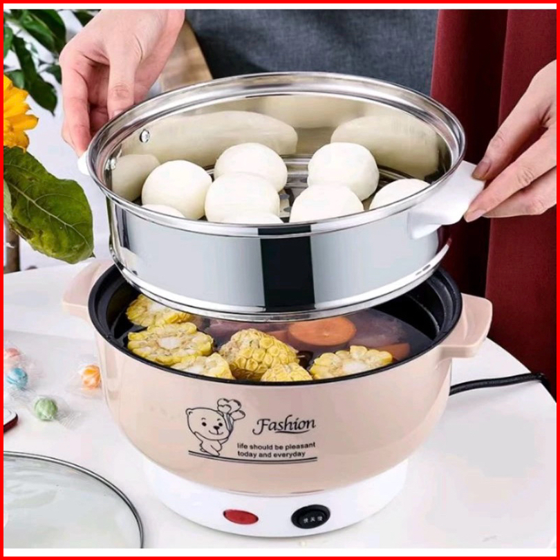 Panci Listrik 2.2 L Serbaguna Bonus Kukusan Steamer Panci Elektrik 2.2 Liter Fry Pan - Vk
