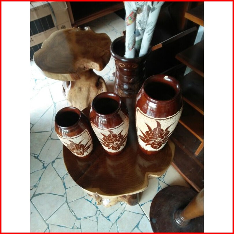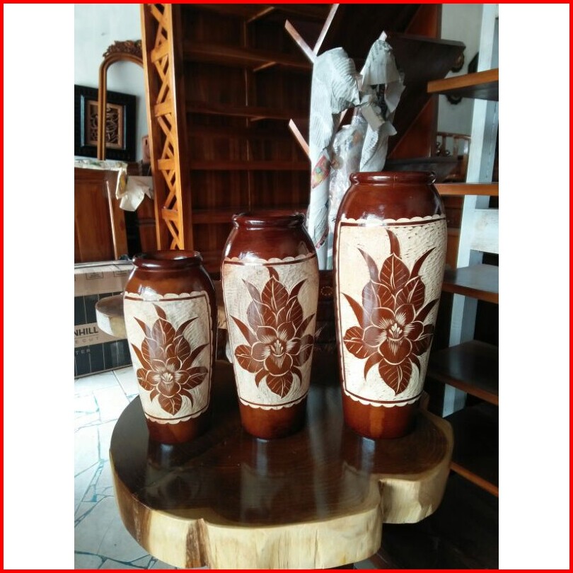 Fas Pot Bunga Gentong 1 Set Ada 3 Pcs Dari Kayu Jati