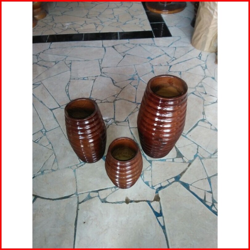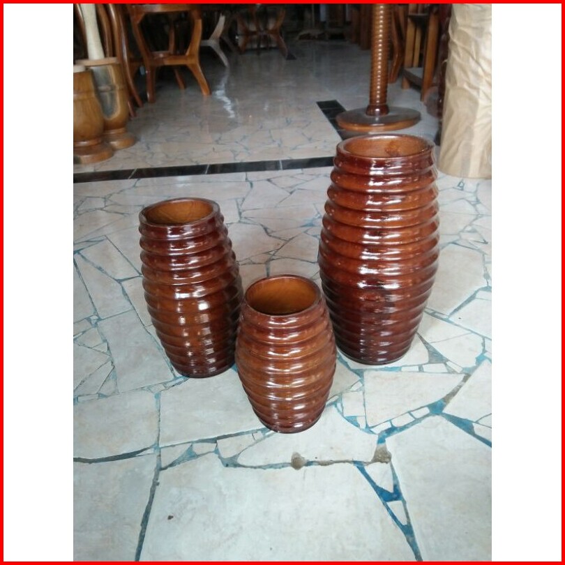 Fas Pot Bunga Kepopong Dari Kayu Jati 1 Set Ada 3 Pcs