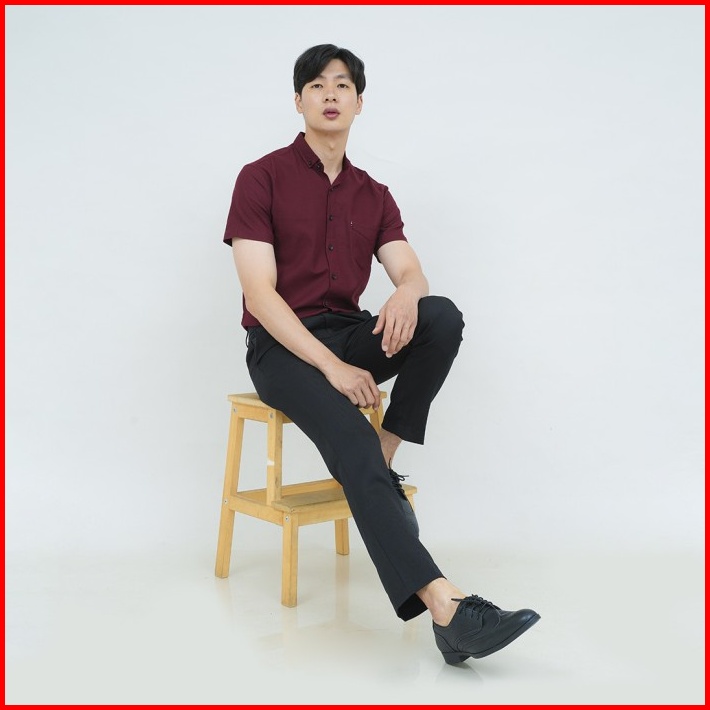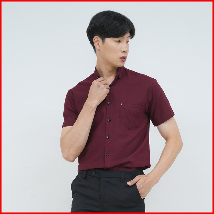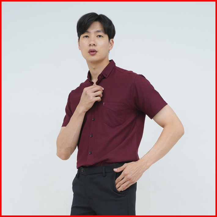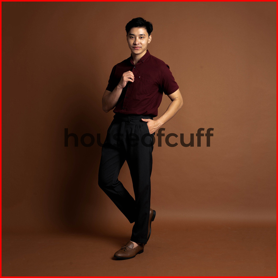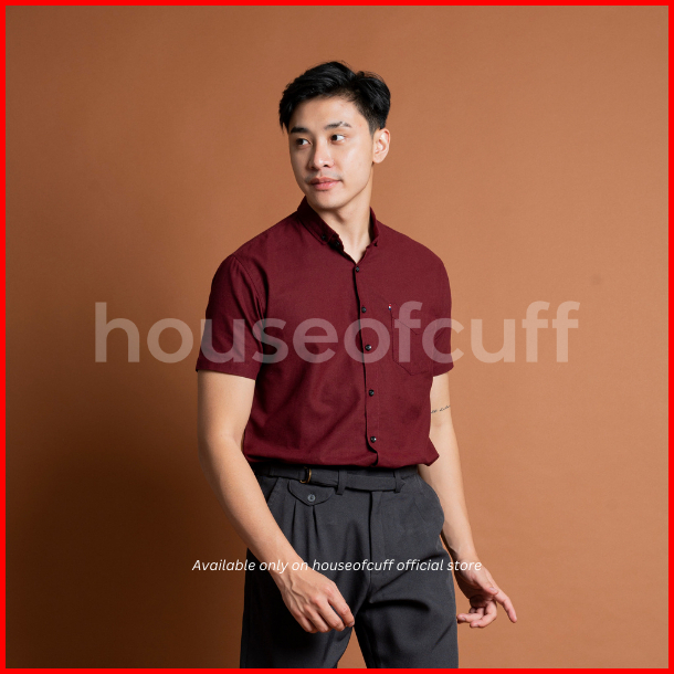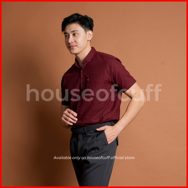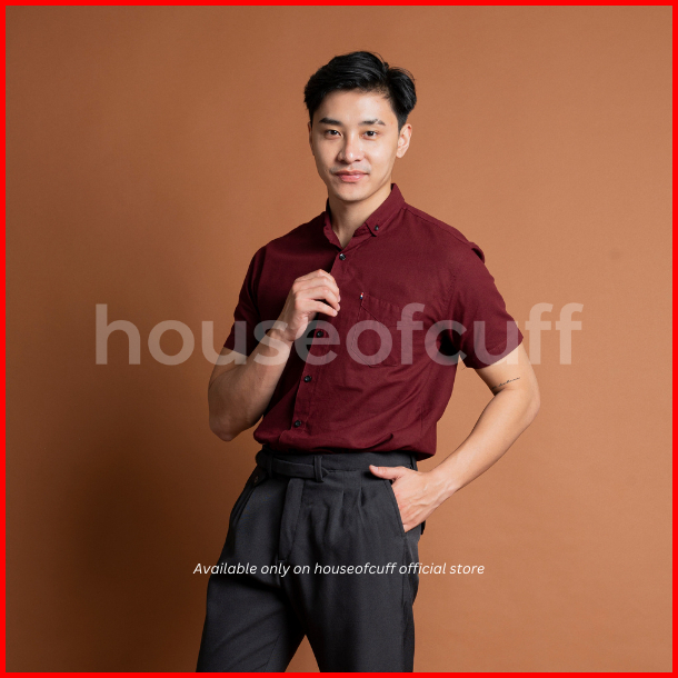 Kemeja Lengan Pendek Pria Formal Slim Fit Marun Houseofcuff