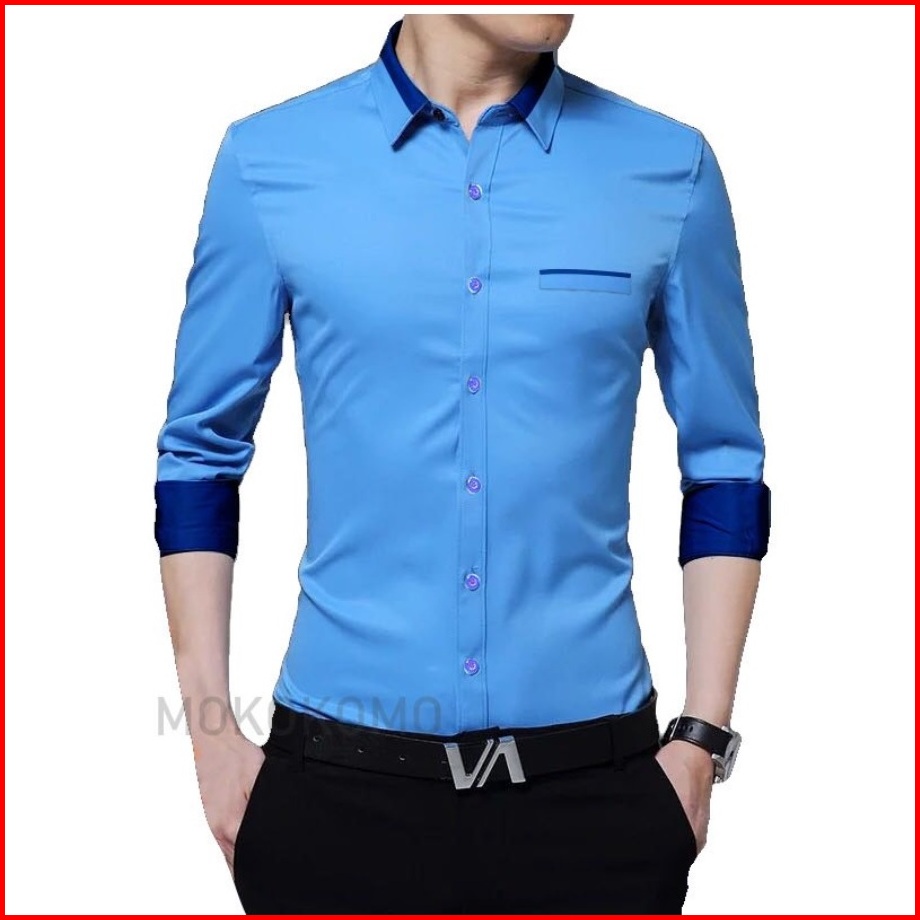 Fortklass Raffi Kemeja Polos Pria Lengan Panjang Formal Slimfit Cowok Cowok Cowo Slim Fit Casual Tangan Formal Kerja Kan
