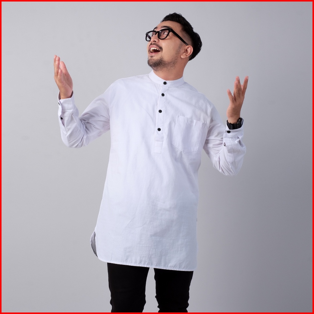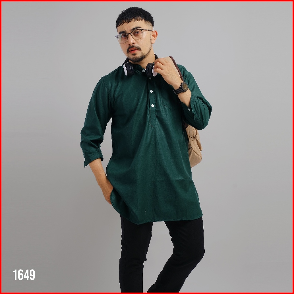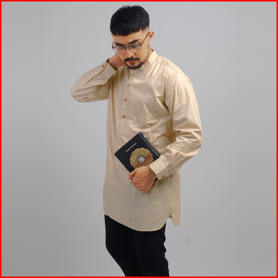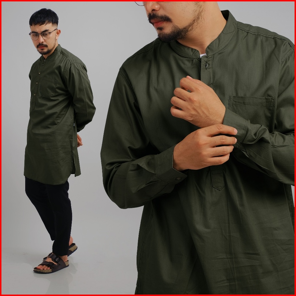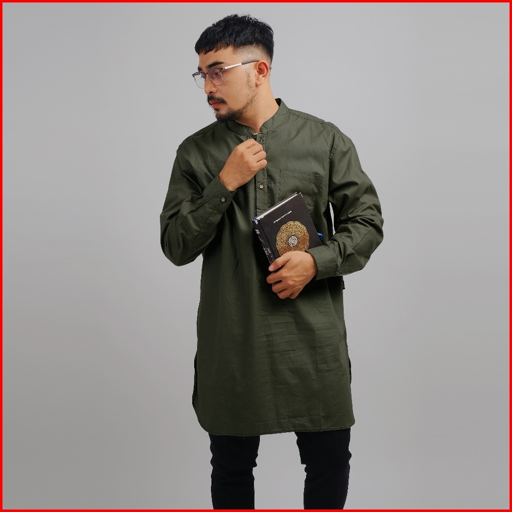 Dgm Baju Koko Pria Polos Lengan Panjang Katun Weave Premium Koko Kurta 009