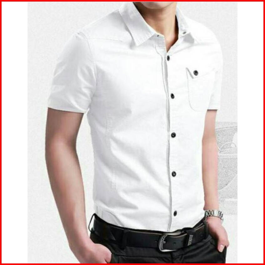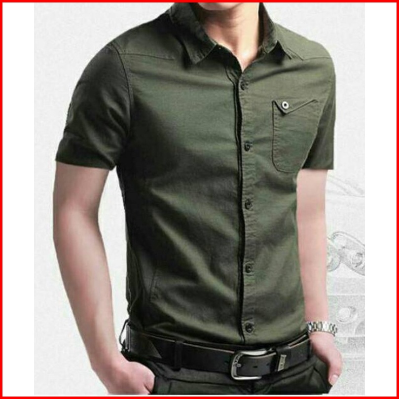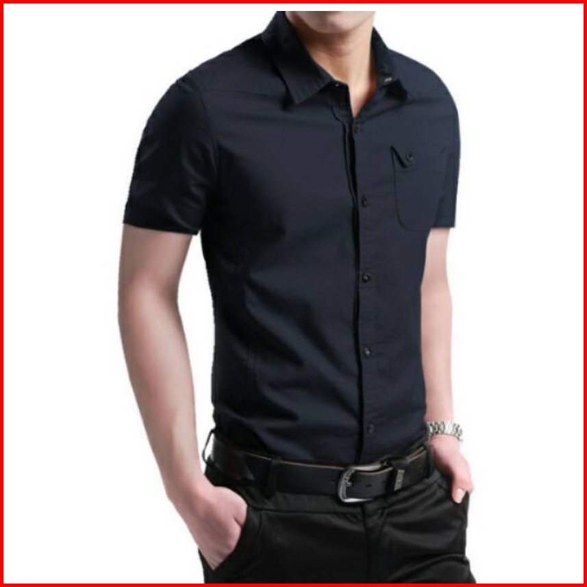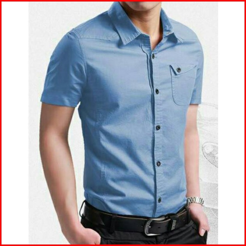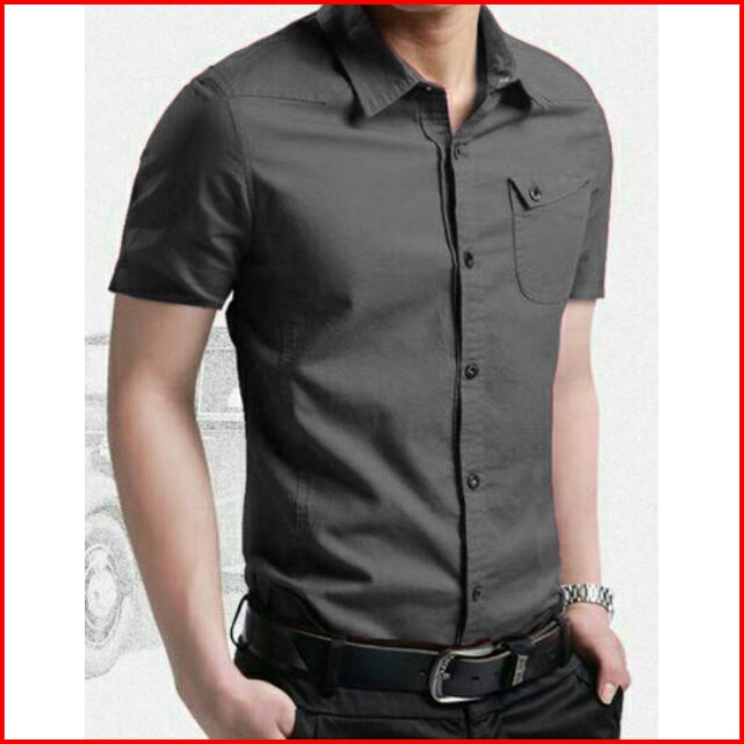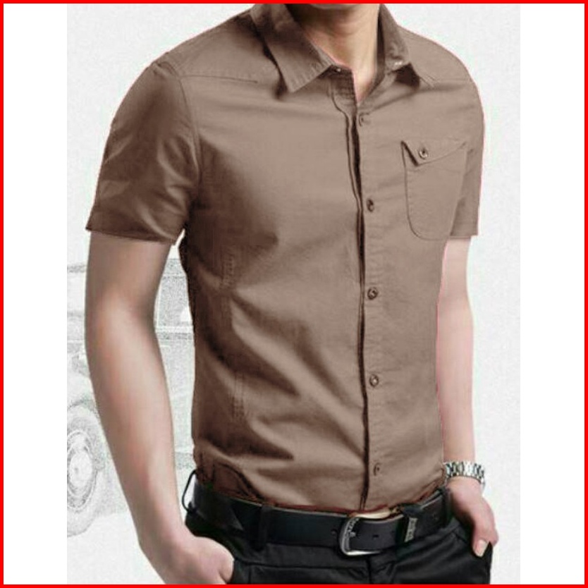 Risrus Apparel Mix Hem Messi Kemeja Pria Lengan Pendek Atasan Kemeja Polos Cowok Kemeja Kasual Pria