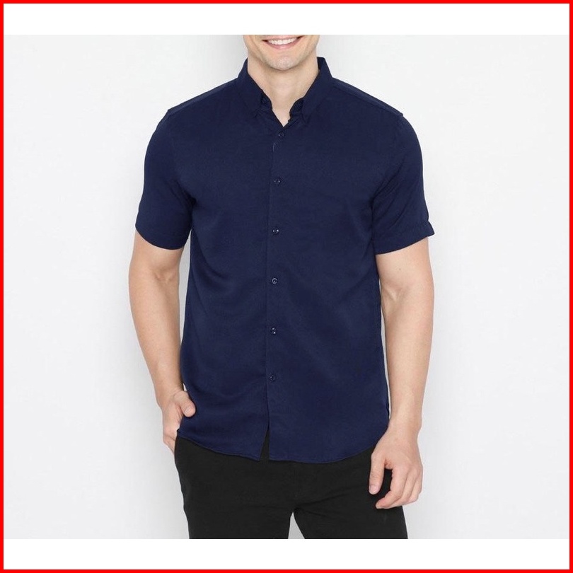 Topfashion 5 Warna Kemeja Pria Simple Polos Lengan Pendek Hem Pria Lengan Pendek Kemeja Kantor Tomza