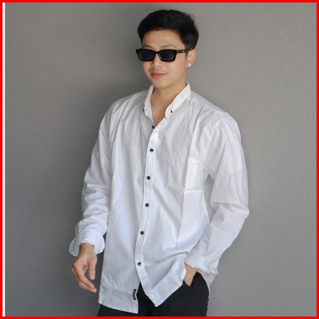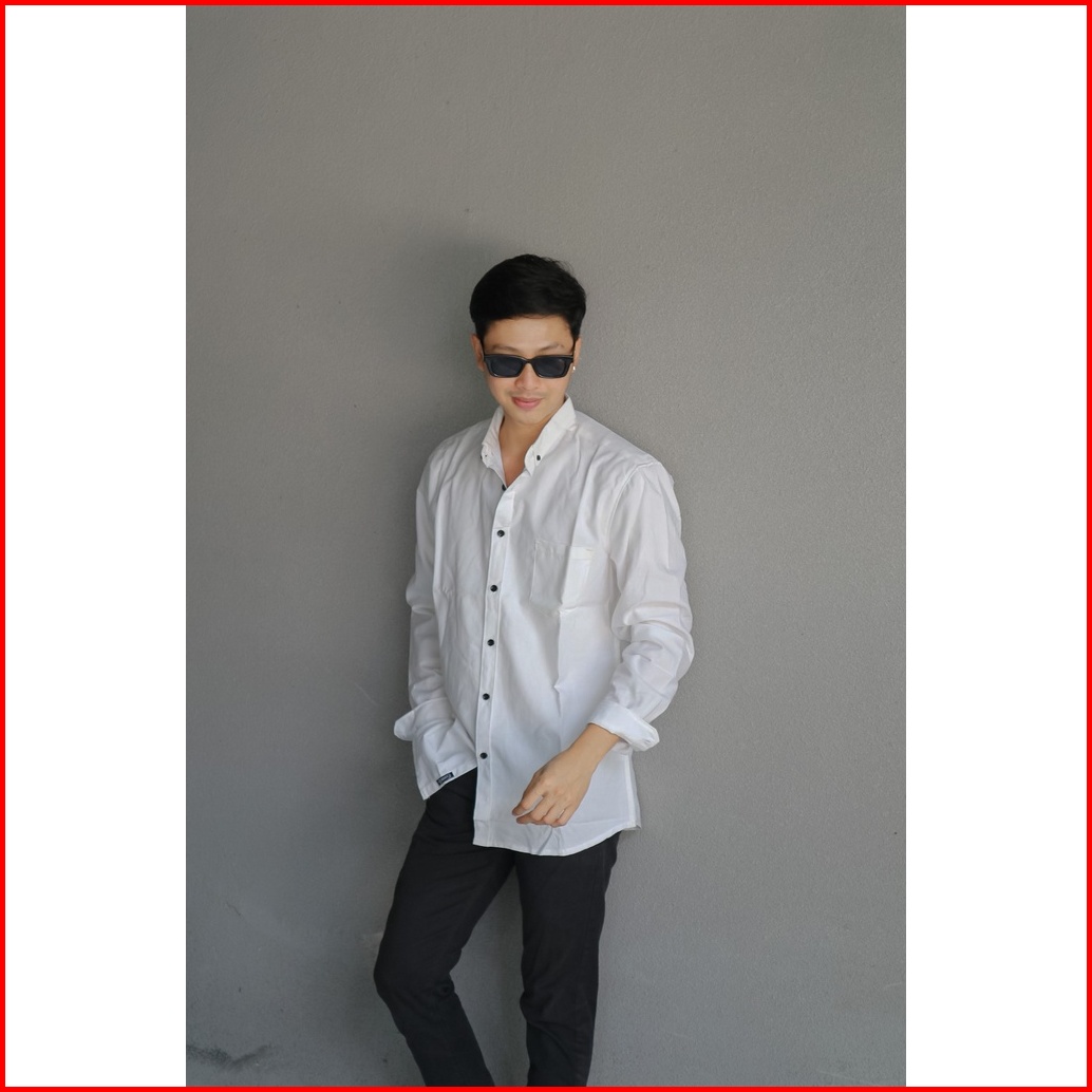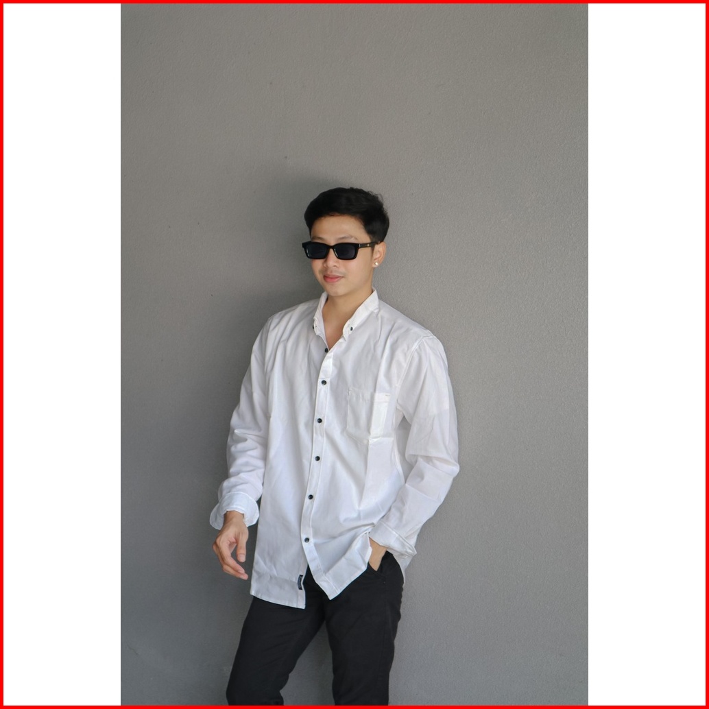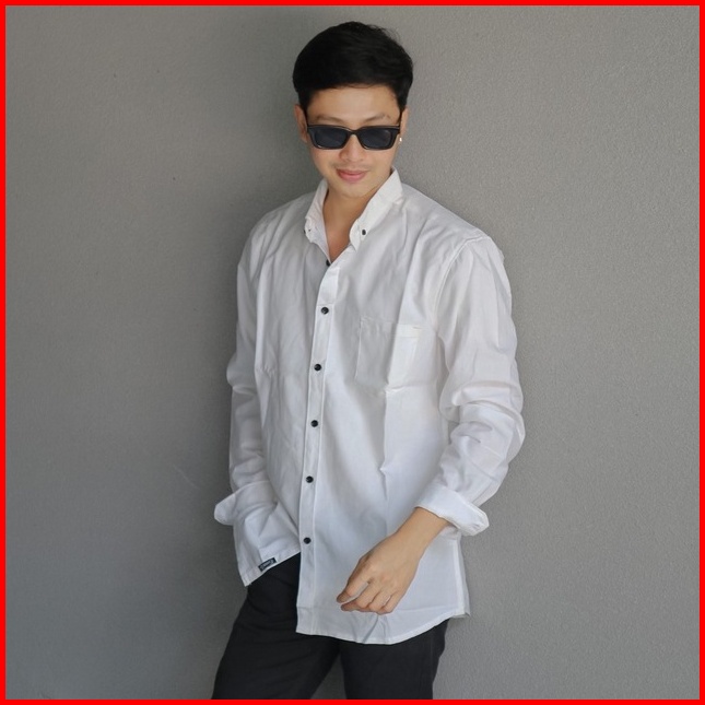Kemeja Polos Panjang Fennel Putih Kancing Hitam