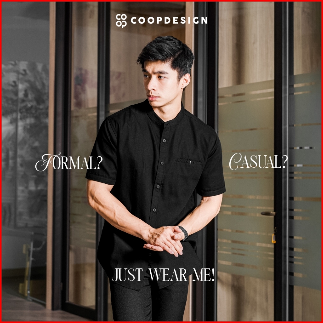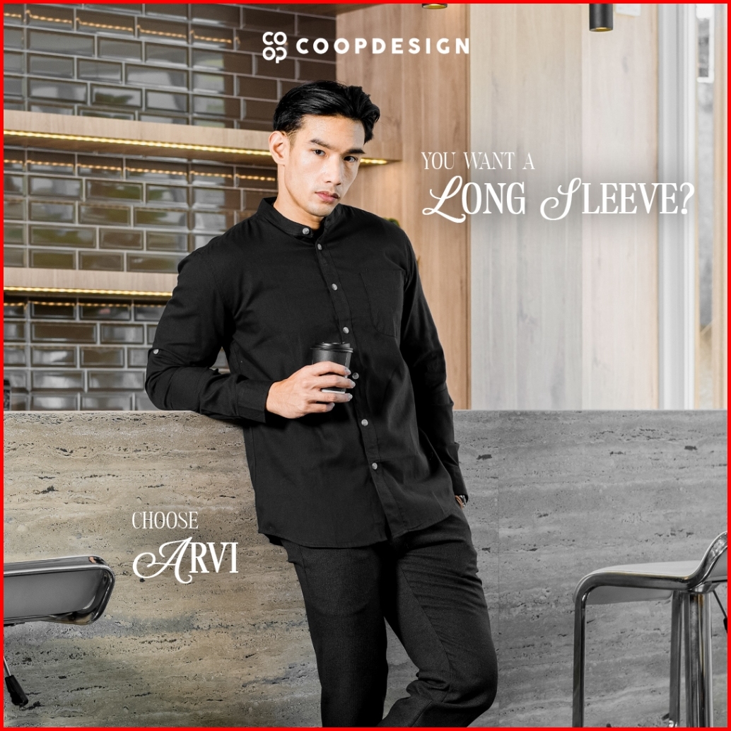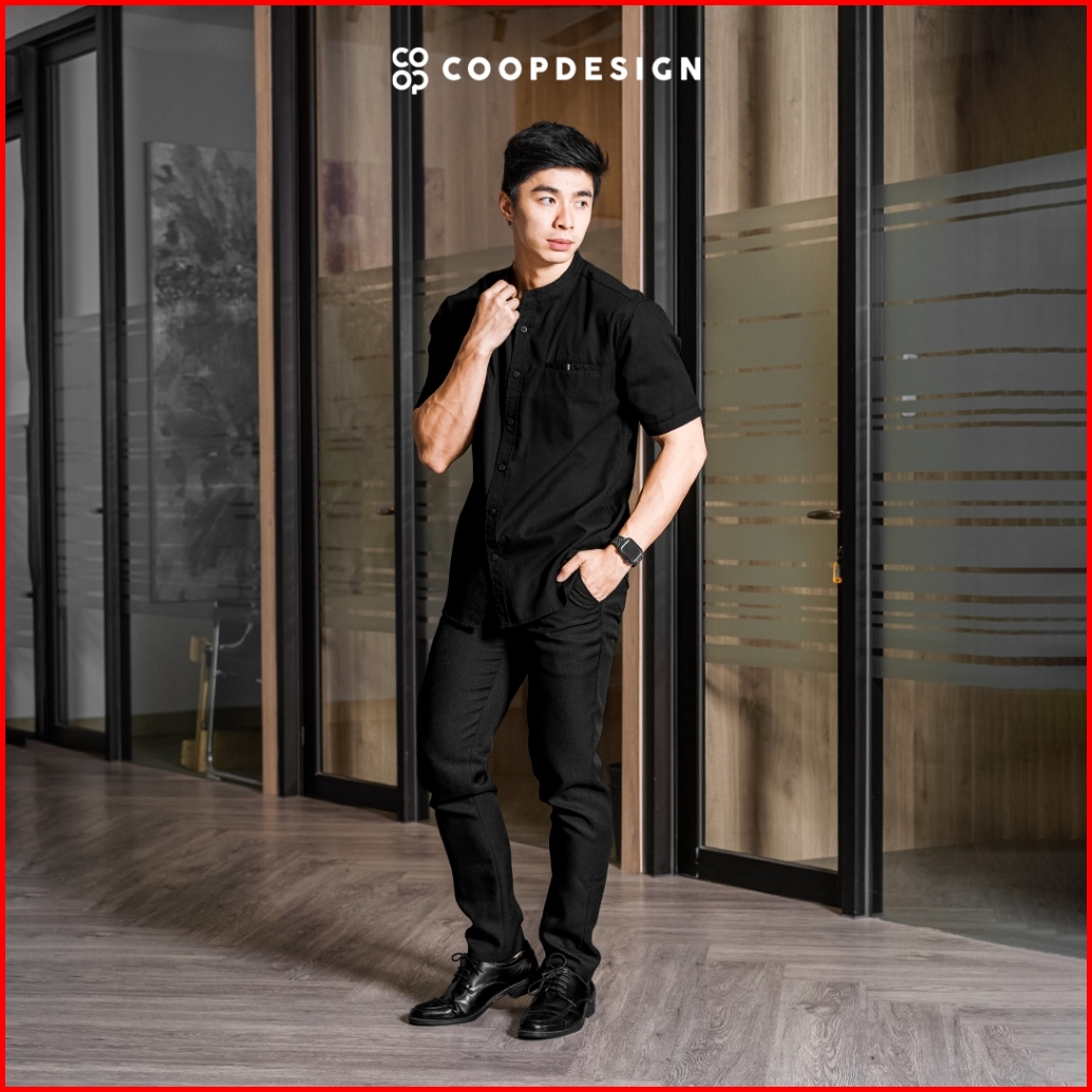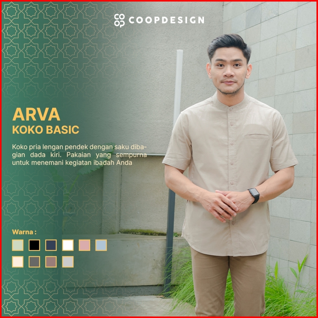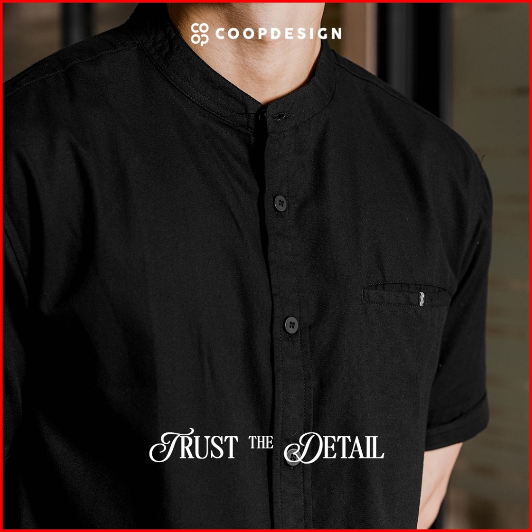 Exclusive Baju Lebaran 2025 Coop Design - Arva Kemeja Koko Polos Kerah Changi Collarless Jenna Twill Dengan Saku Lengan
