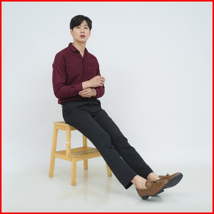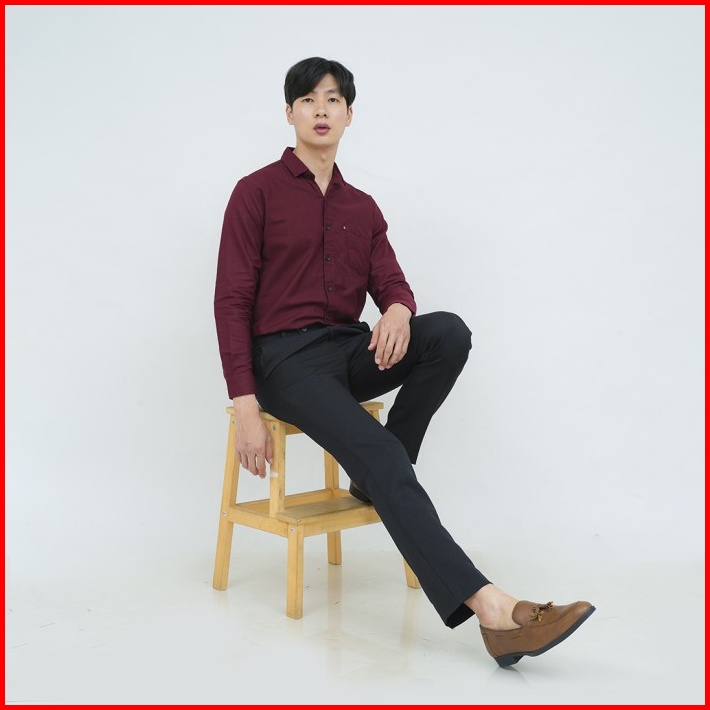 Kemeja Lengan Panjang Pria Formal Slim Fit Marun Houseofcuff