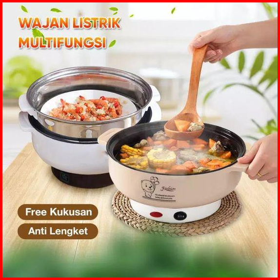 Amaoli - Panci Listrik Multifungsi Free Kukusan Steamer Stainless Lapis Keramik Anti Lengket Teflon Cooking Pot Panci Li