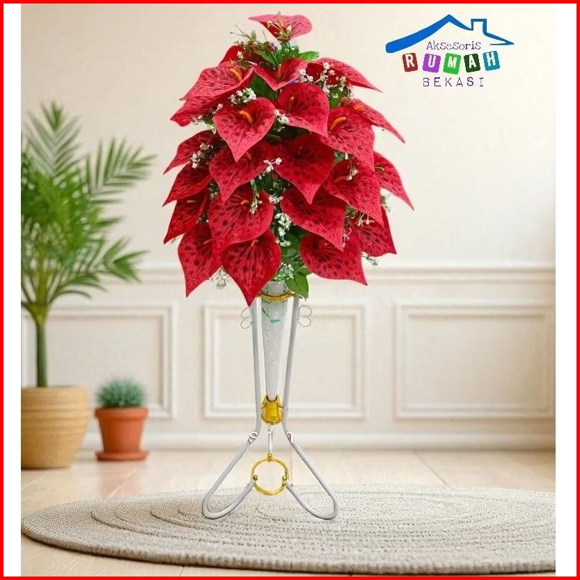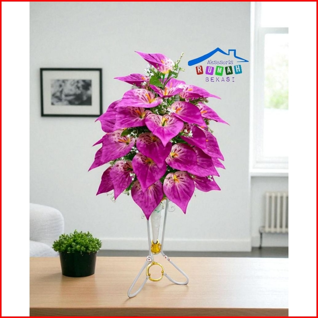 Bunga Aron Panda Artificial 18 Kuntum Dengan Pot Standing Besi