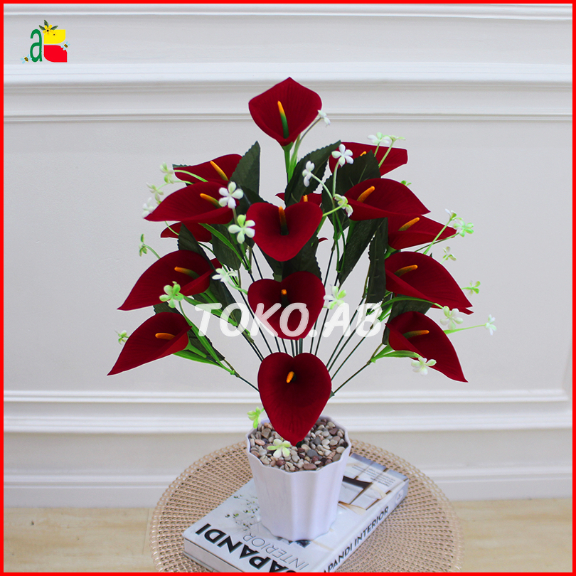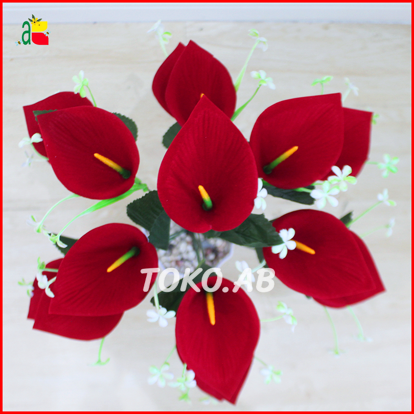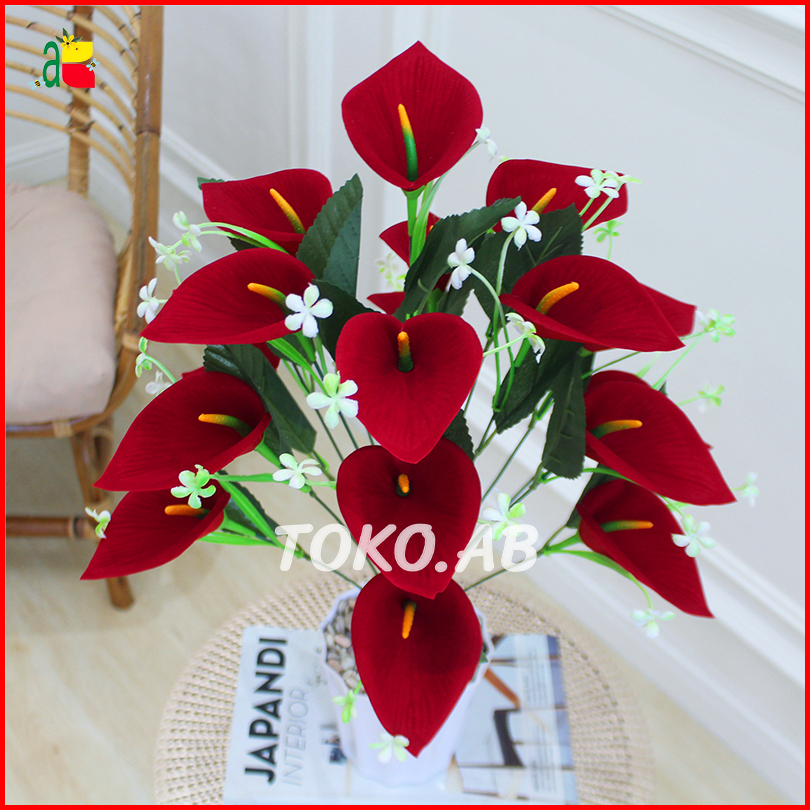 Anthurium Beludru Merah Bunga Hias K18 B8172 Bunga Artificial Dekorasi Rumah Home Dekor