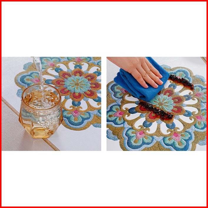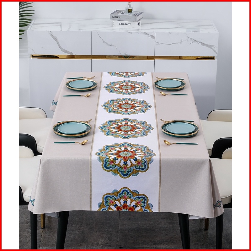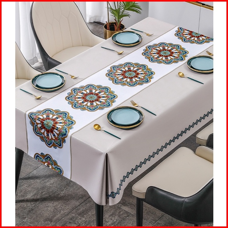 Gdt-033 Taplak Meja Makan Ruang Tamu Premium Pvc Waterproof Motif Bunga Mewah