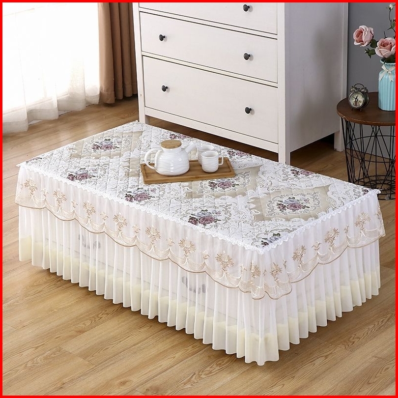 Taplak Meja Import Persegi Panjang Gaya Cina Mewah Renda Rempel Rumbai