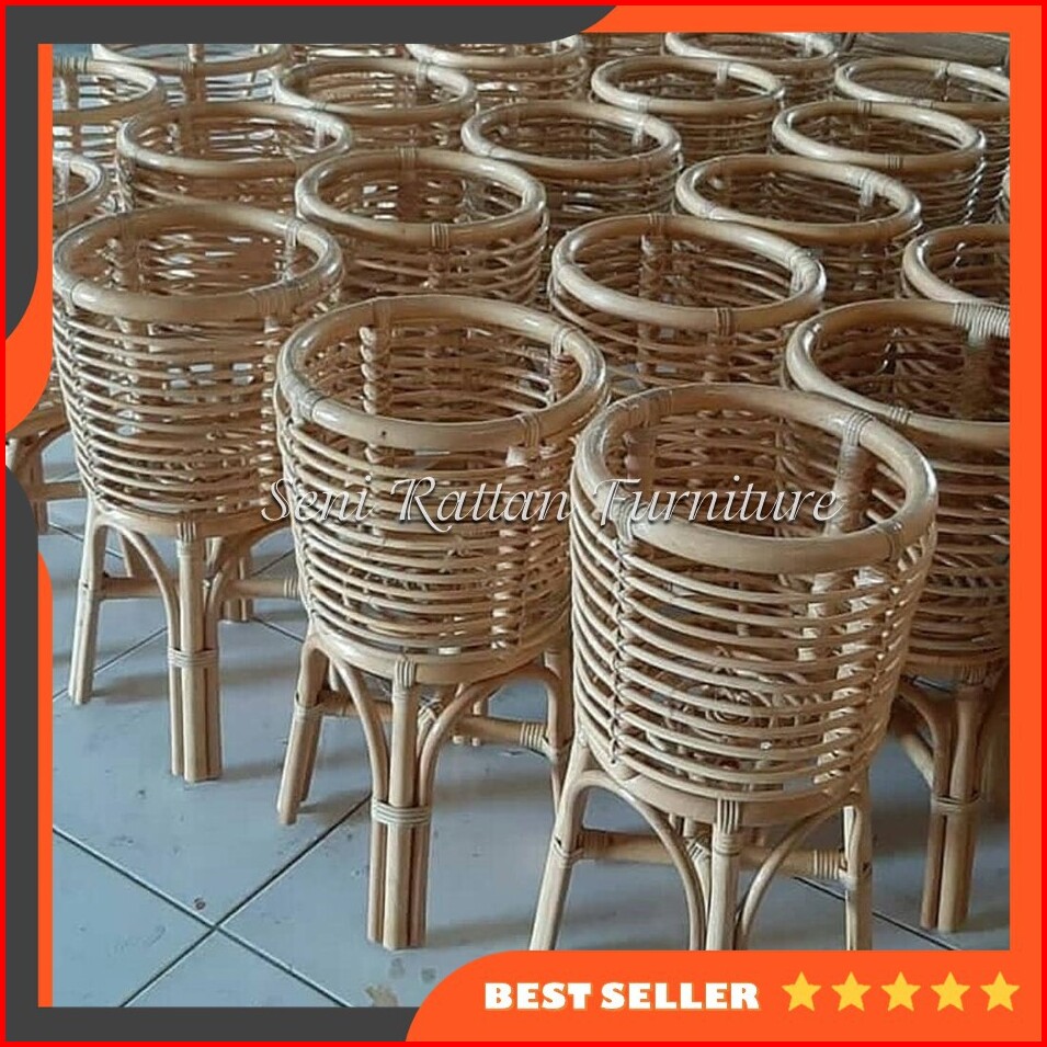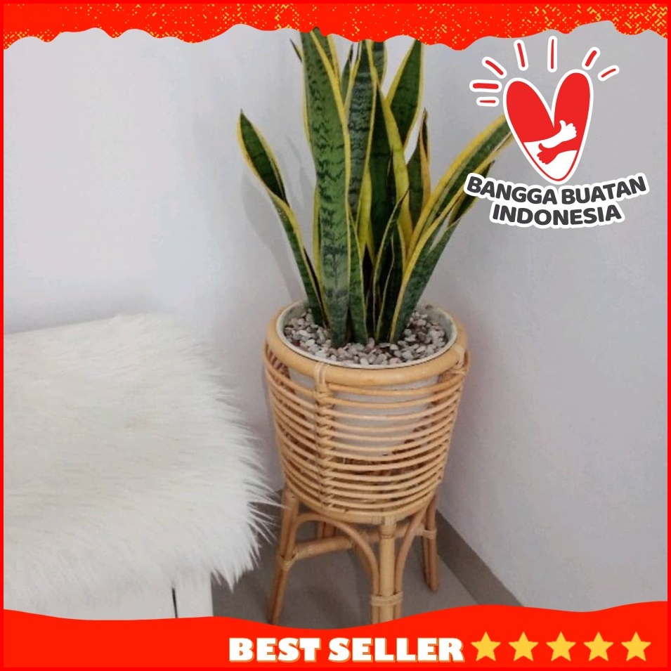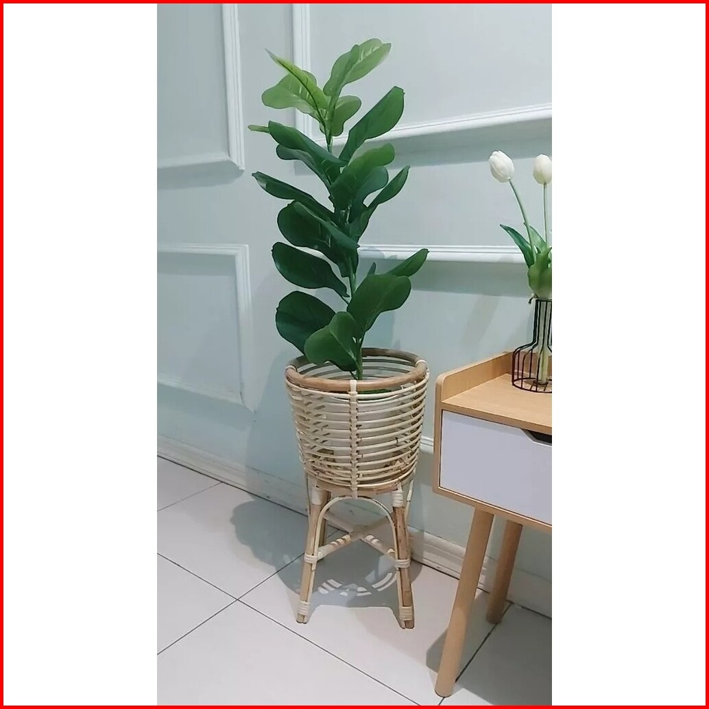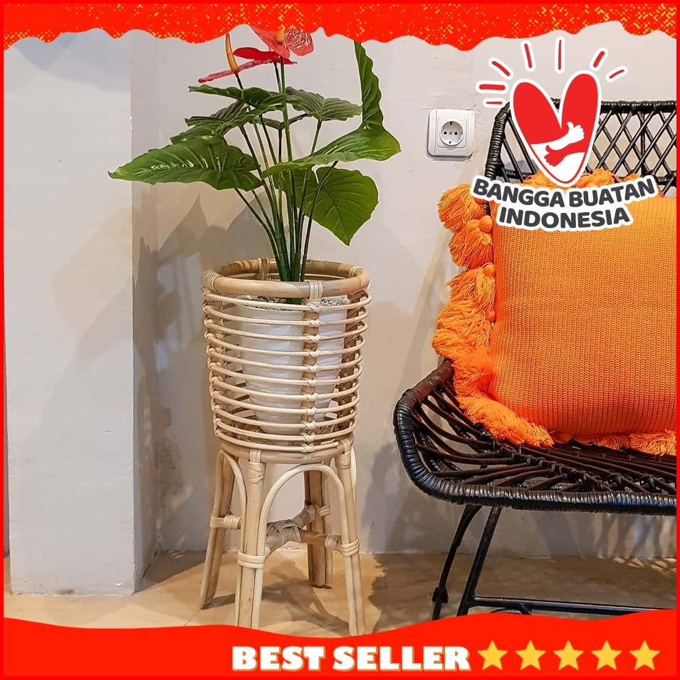 Standing Pot Bunga Bulat Single Rotan Alami Untuk Taman