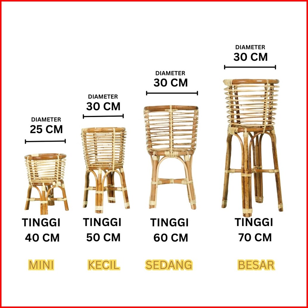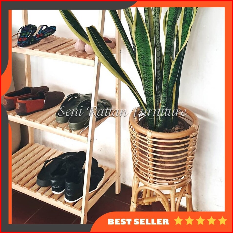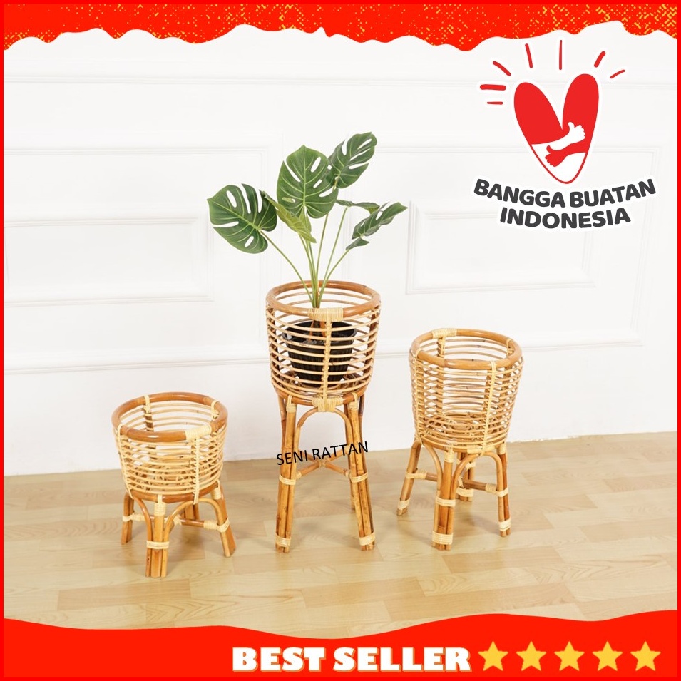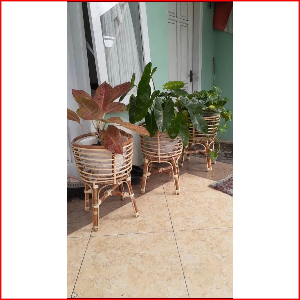 Standing Pot Bunga Bulat Single Rotan Alami Untuk Taman