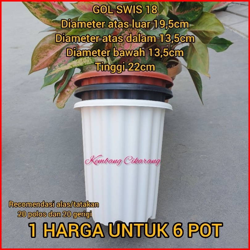 6 Pcs Gol Swiss 18 Pot Bunga Tinggi Pirus Tegak Motif Garis Mirip Yogap Bagus Murah Cantik