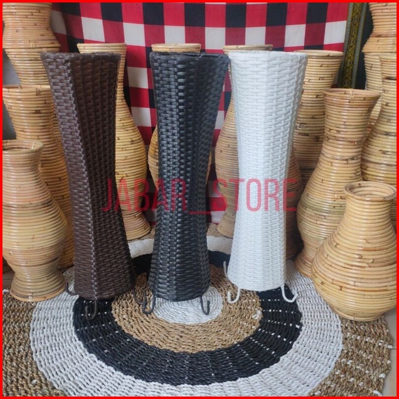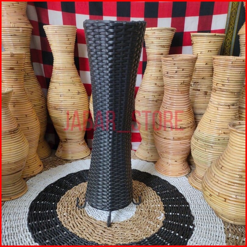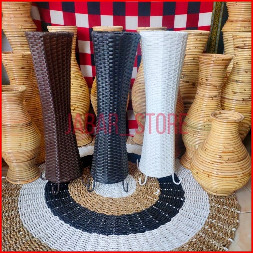 Hitam, Putih, Coklat, Guci rotan 30cm