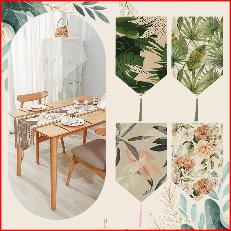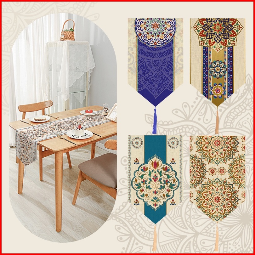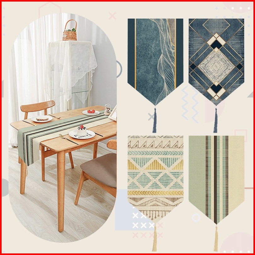 Torain Pelari Taplak Meja Linen Dicetak 180x40cm Penebalan Lapisan Ganda Alas Meja