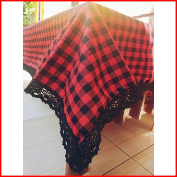 Taplak Meja Makan Motif Kotak Dengan Renda Taplak Meja Besar Ukuran 100 150 200 300