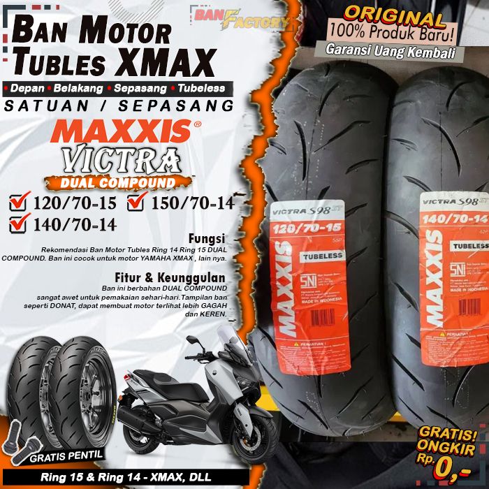Sepasang Ban Motor Tubles XMAX MAXXIS VICTRA Ring 15 Ring 14 Ban Motor Tubeless Depan Belakang XMAX