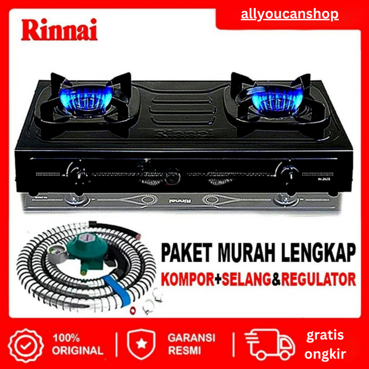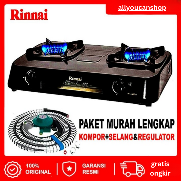 KOMPOR GAS RINNAI 2 TUNGKU RI 202S 302S 522S KOMPOR GAS 2 TUNGKU RINAI TEFLON STAINLESS