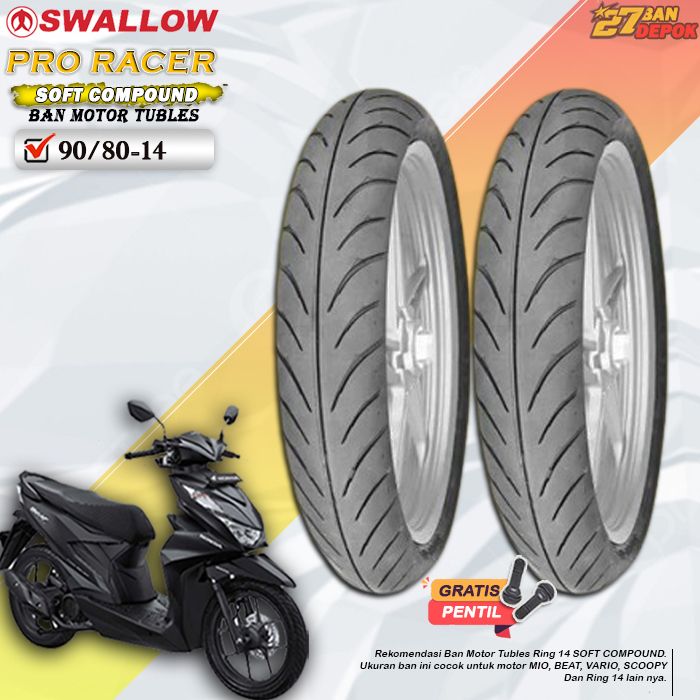 Sepasang Ban Motor Tubles Beat Swallow Pro Racer Ring 14 Ban Motor Tubeless Depan Belakang Beat Vario Scoopy Ring 14