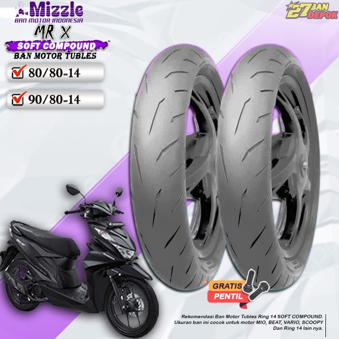 Sepasang Ban Motor Tubles Beat MIZZLE MR-X Ring 14 Ban Motor Tubeless Depan Belakang Beat Vario Scoopy Ring 14