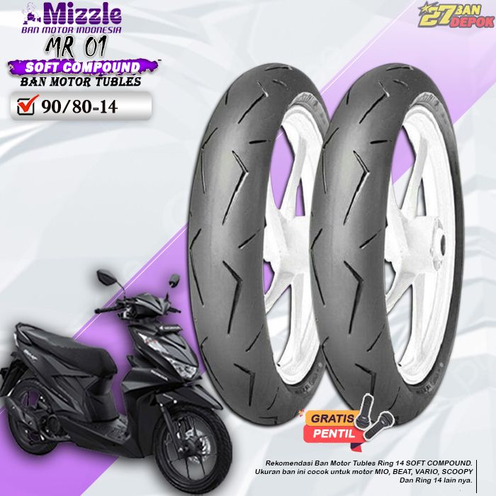 Sepasang Ban Motor Tubles Beat MIZZLE MR-01 Ring 14 Ban Motor Tubeless Depan Belakang Beat Vario Scoopy Ring 14