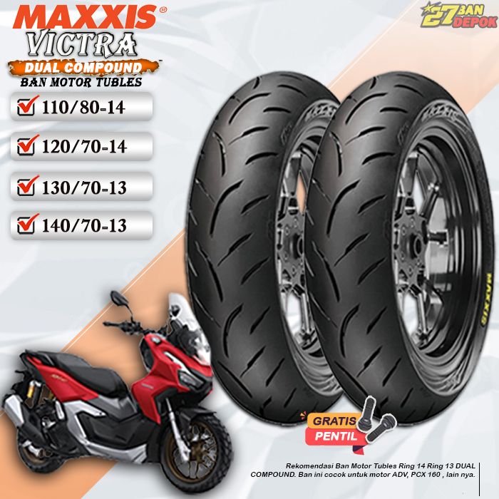 Sepasang Ban Motor Tubles ADV PCX 160 MAXXIS VICTRA Ring 14 Ring 13 Ban Motor Depan Belakang ADV PCX Ring 14
