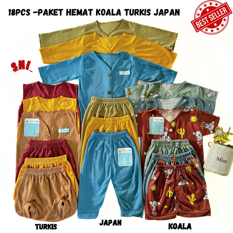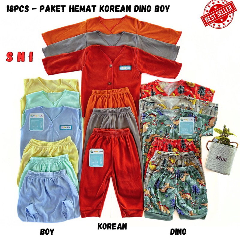 18PCS PAKET PREMIUM PRINTING PERLENGKAPAN BAJU CELANA BAYI BARU LAHIR 0-12 BULAN COMBO MIX NETRAL SNI