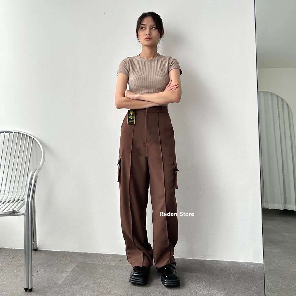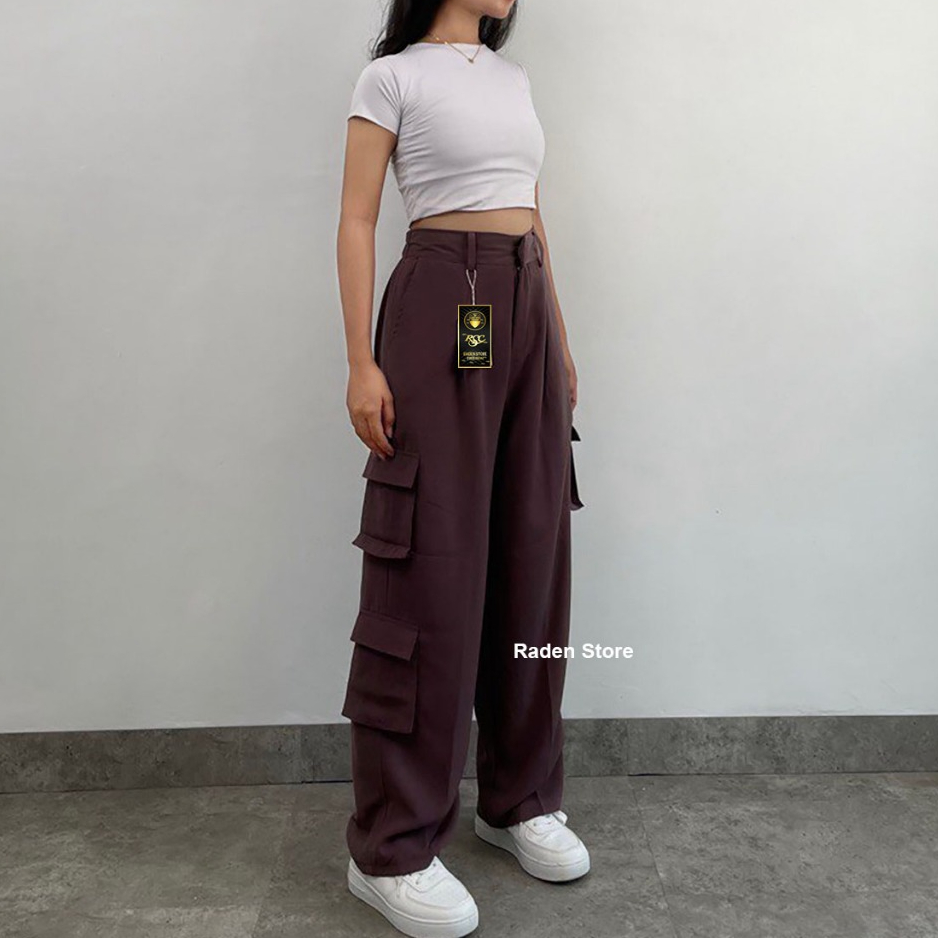 CELANA CARGO WANITA HIGHWAIST BONNIE CARGO PANTS CELANA KARGO WANITA