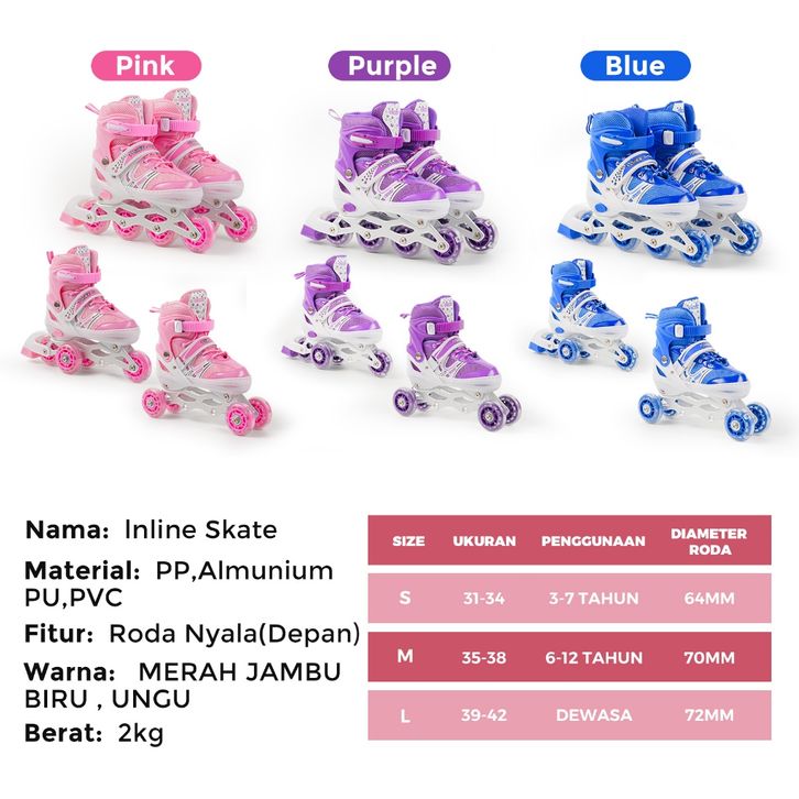SEPATU RODA ANAK PEREMPUAN BARIS GANDA INLINE BAN MENYALA LUCU GEMOY