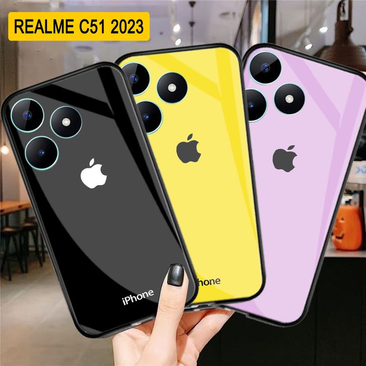 Softcase Glass Kaca Realme C51 Terbaru 2023 [M154] Motif Iphone - Casing Handphone - Pelindung Handphone - Aksesoris Han