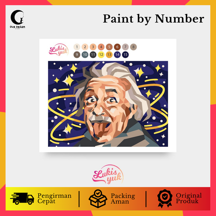SET ALAT LUKIS DENGAN NOMOR EINSTEIN PAINT NUMBERS KIT 35X25CM HAMPERS KANVAS LUKIS